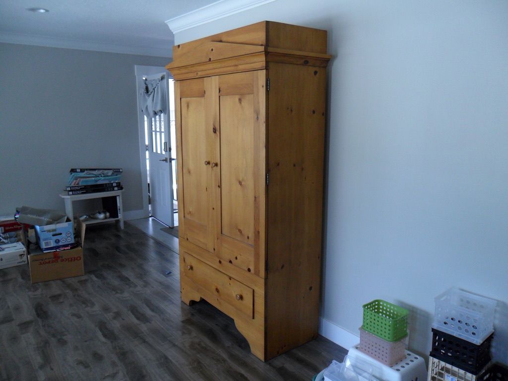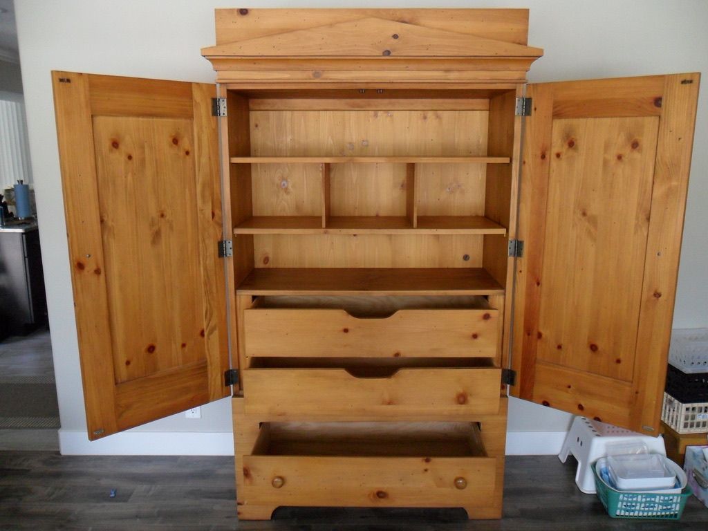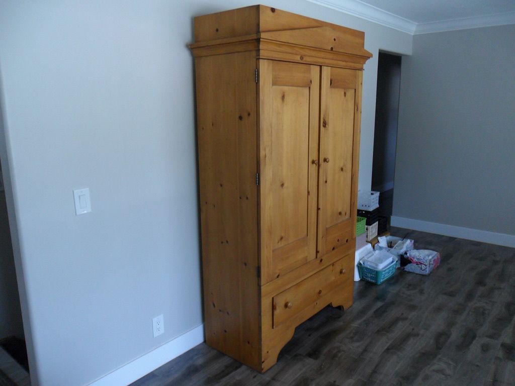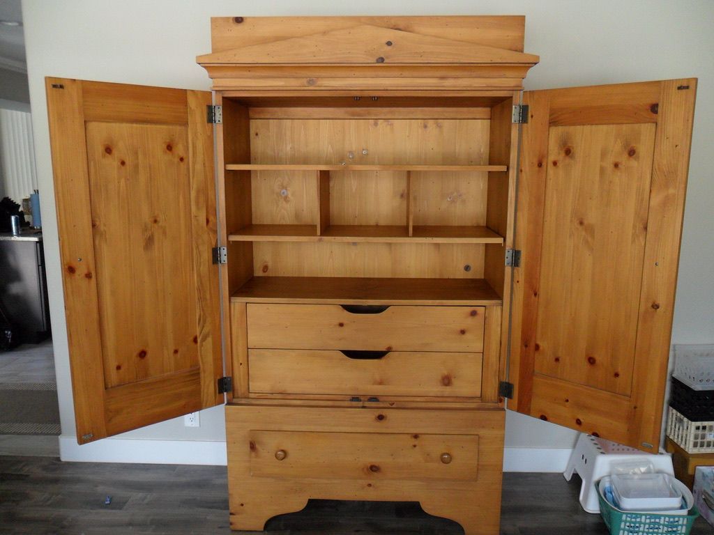 This is a beautiful armoire. It is in excellent shape. Not sure the kind of wood it is made from but it is nice. It is 80" tall 44" wide and 19" deep. This belonged to my sister who recently passed away. I am asking $500 cash. But reasonable offers are considered.