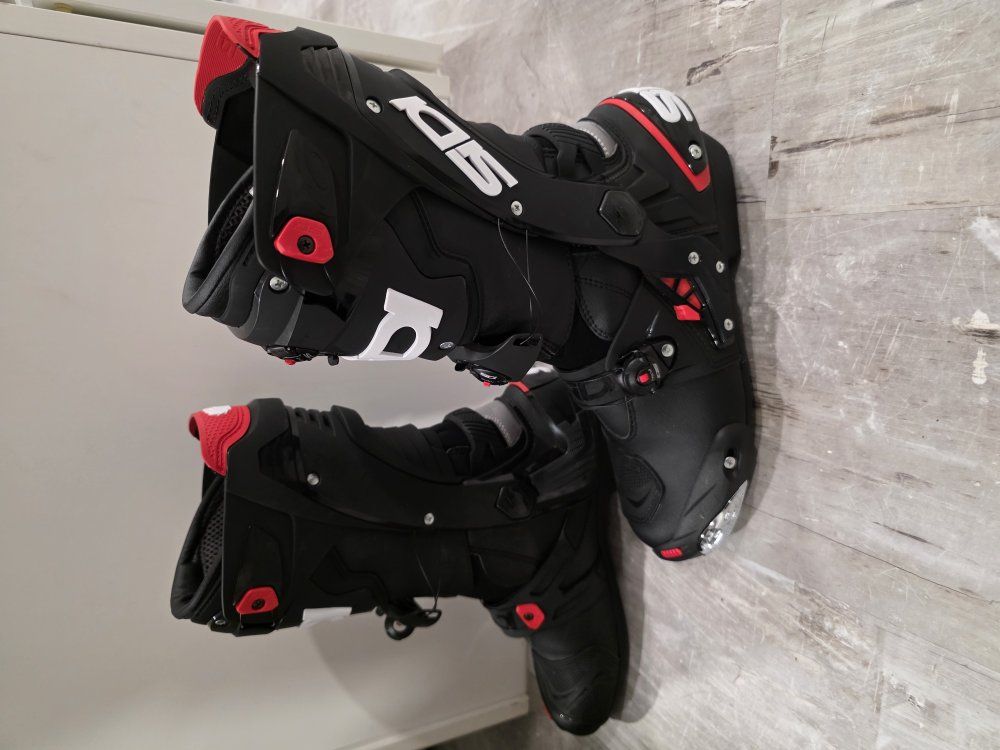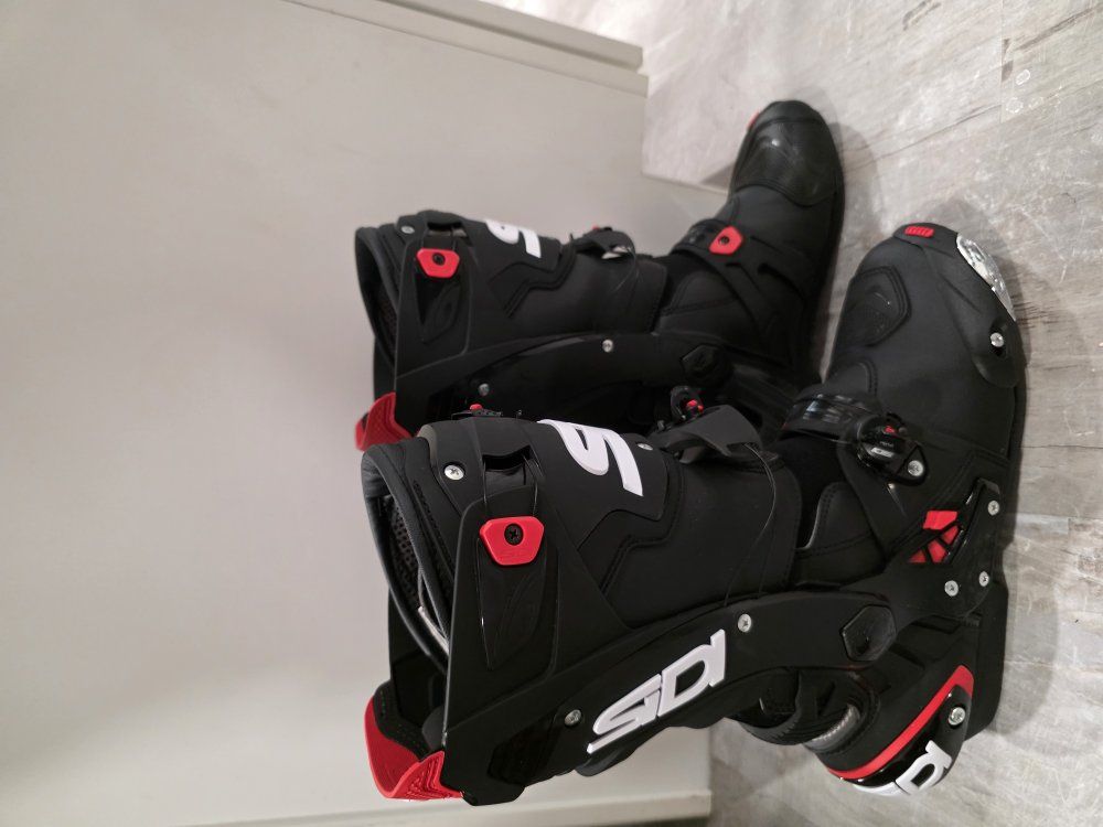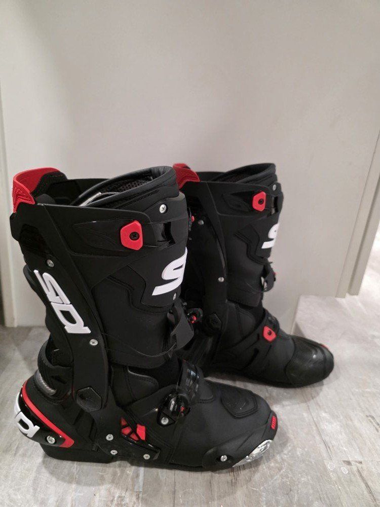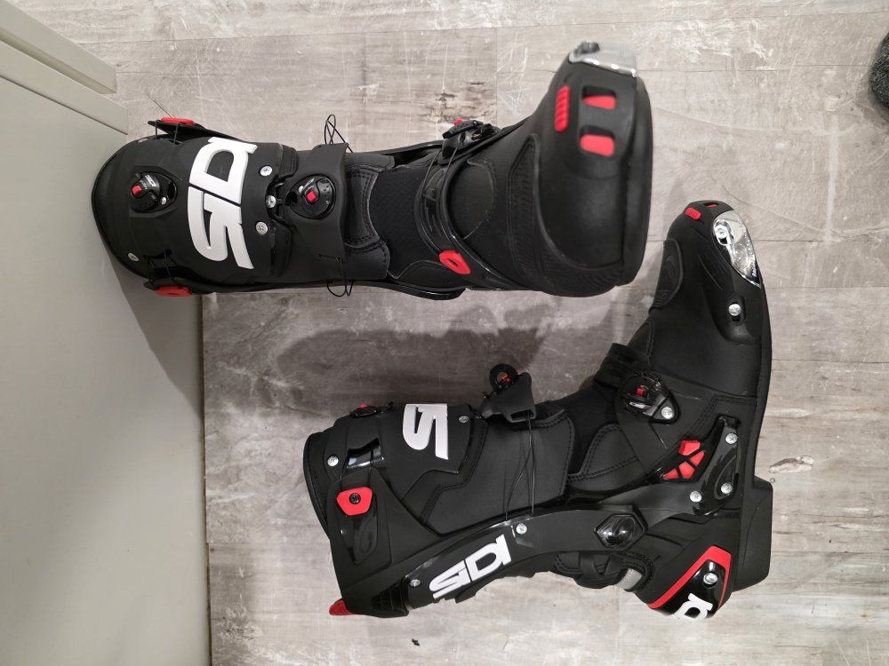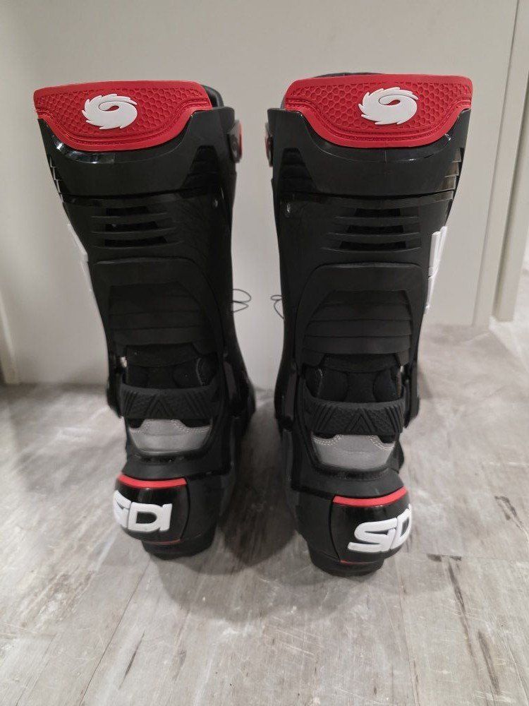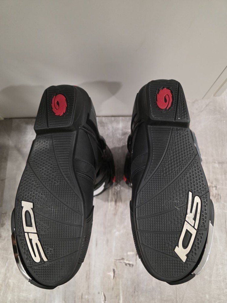 Sizing: Fits roughly a half size small from what the Sidi size chart indicates Pat from the video requires a Sidi 45 / US 11 to fit his US 10.5 foot Even with the proper shoe size, boots are extremely tough to get on and off Moderately wide footbed Features: The top of the line race boot from Sidi Race / track level protection and a full host of replaceable parts Uses a hybrid inner bootie system: The bottom of the bootie is one piece The top is split into an inner core and outer section Not a true inner bootie system as used by other brands About 5/10 stiffness and a moderately wide footbed for a track boot Technomicro base material SIDI's exclusive Tecno-3 Push Closure System Elastic panels in the front and rear of the boot in flex areas for maximum comfort A single ankle support brace, nylon material infused with fiberglass fibers, joins the internal and external ankle joint for more support The exterior ankle support brace is equipped with air vents Small ventilation slots at the center of the support brace Nylon inner sole with removable arch support pad Double stitched in all high stress areas Fully encapsulated heel cup Lined with anti-abrasion Cambrelle in the foot area for comfort Perforated Teflon treated nylon lining Toe slider comprised of nylon reinforced with fiberglass and fitted with an air intake and an innovative alloy insert Dual compound sole DuPont® polymer toe shift pad CE certified to EN13634:2017