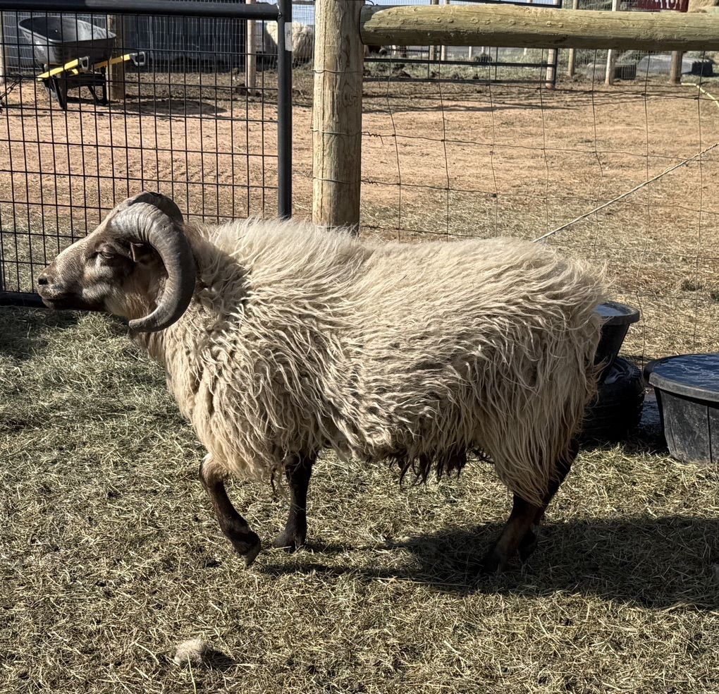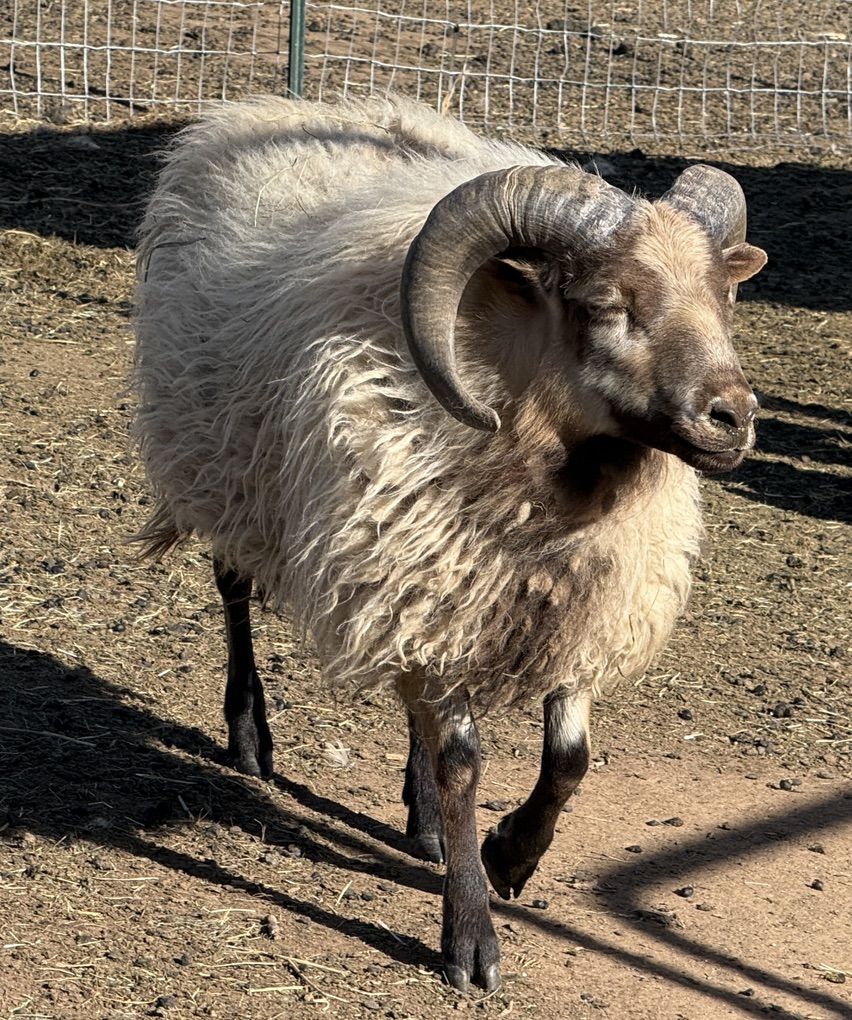 PayPalThis is “Beyonce’s 2025 Ram”, a big yearling moorit badgerface icelandic ram. Built for breeding, he features big wide horns with a long curl. Good temperament once he gets to know you — all Icelandics are wary of new people, but he warms up quickly. As you can see in the photos and video, he is already as big as my large adult rams, and still growing. His sire Wampa is registered but dam Beyonce is not, so he cannot be registered. See his sire and dam, and more available sheep and lambs at redqueenranch.com