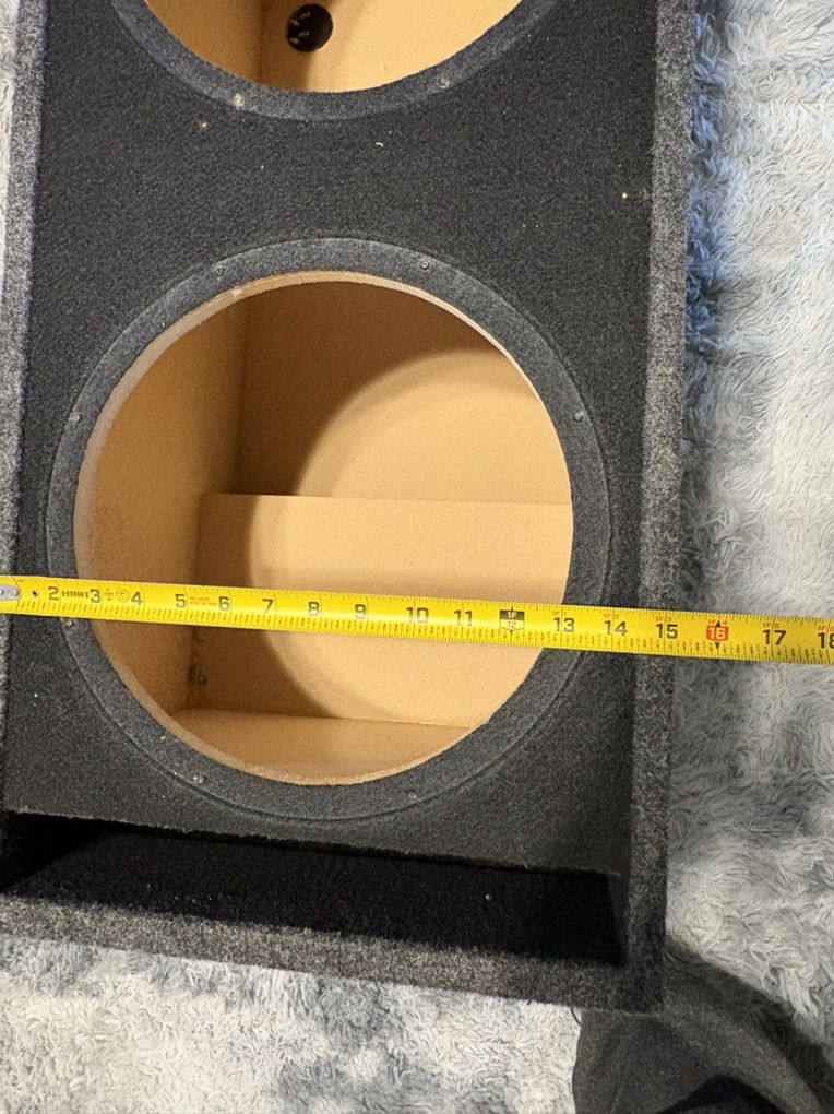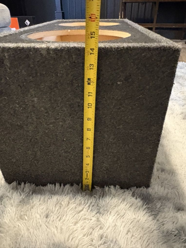 ApplePayHave a high quality subwoofer enclosure made to hold two 12in subs, it’s in great condition. I had 2 pioneer champion series in here and they would bump sooooo loud. Has a single air port on one side, check out my other listings! Willing to negotiate price, if you make it easy and pick it up from my house thankyou for looking! Cash or Apple Cash works for me, no scammers please, if it’s up it’s available! (Measurements are pictured)
