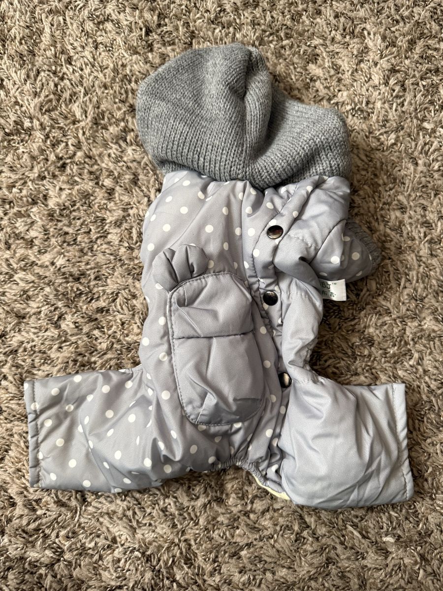 ApplePayGrey polka dot bunny ears warm coat and checkered set plus duckie toy