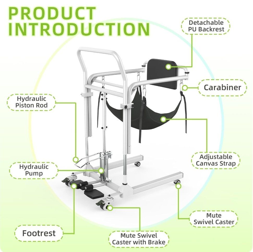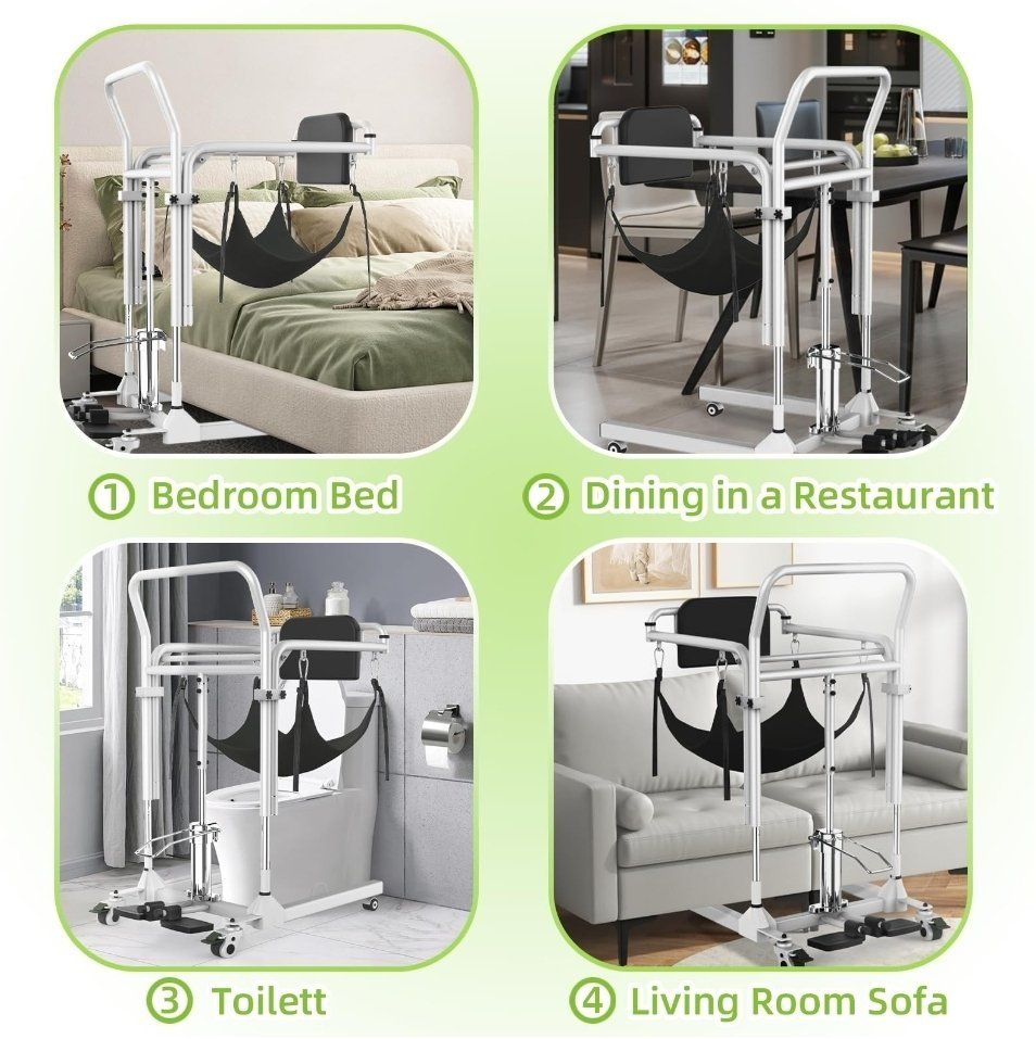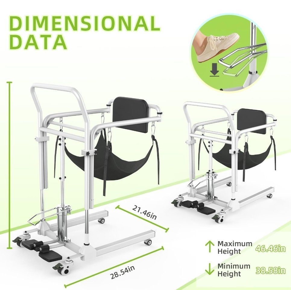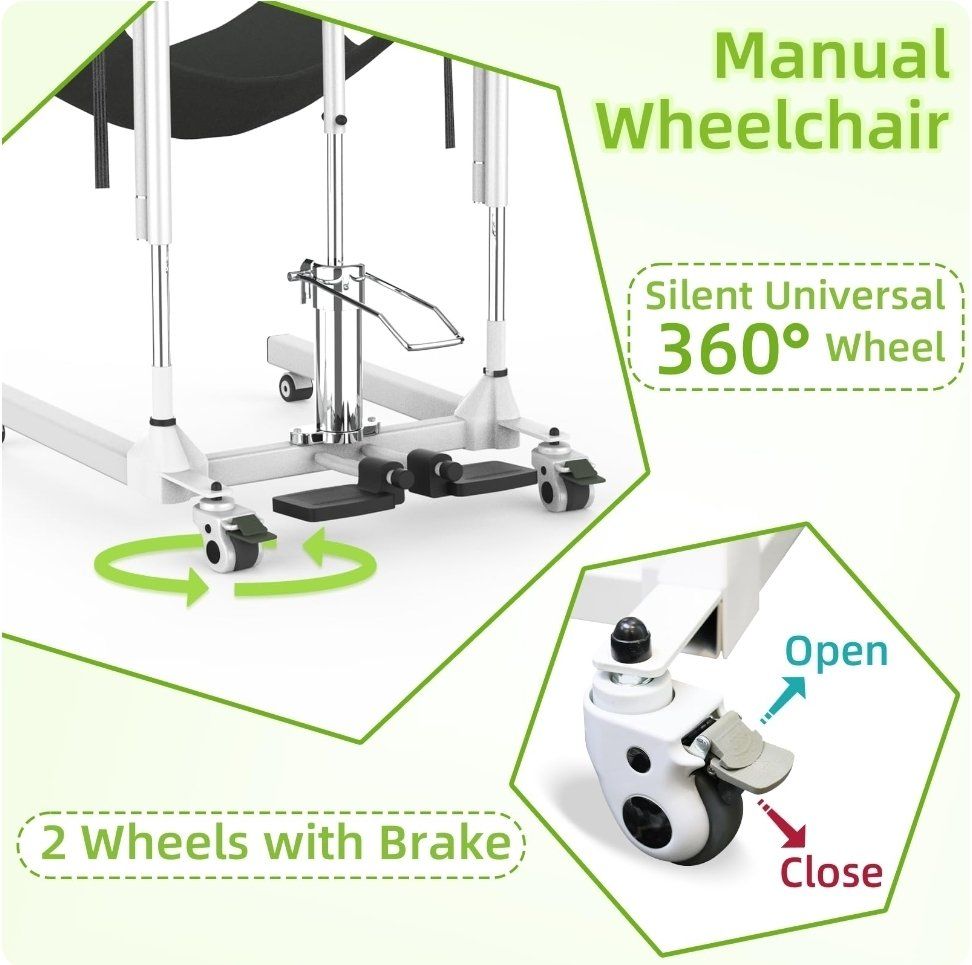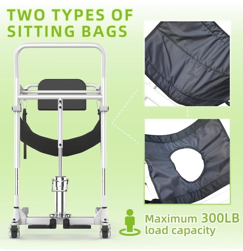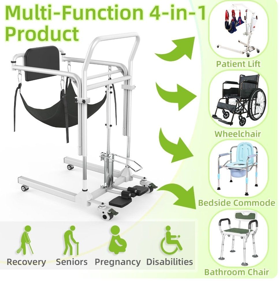 4-in-1 Patient Lift Transfer Chair - Folding Portable Transfer Chair for Elderly and Disabled, Sit to Stand Lift for Home, Wheelchair Transfers Between Bed, Car, Toilet, Sofa, Weight Capacity 300 lb