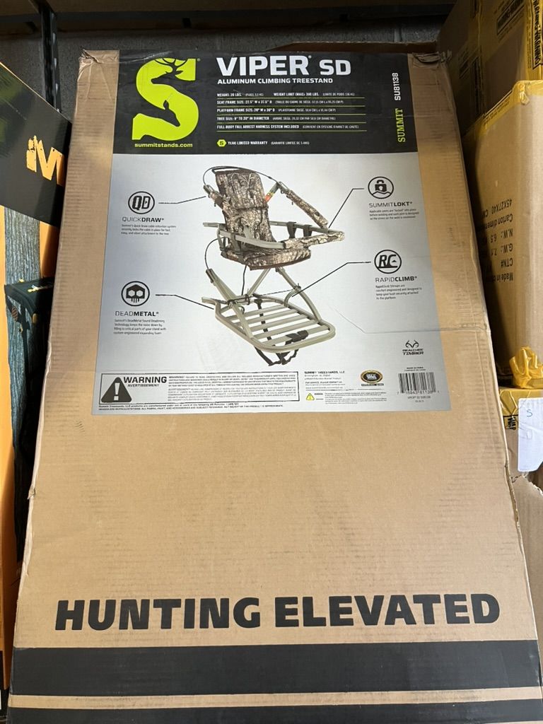 Lightweight aluminum climbing treestand featuring sound-dampening technology, Realtree Timber camo finish, and a full-body harness system for safety and comfort.