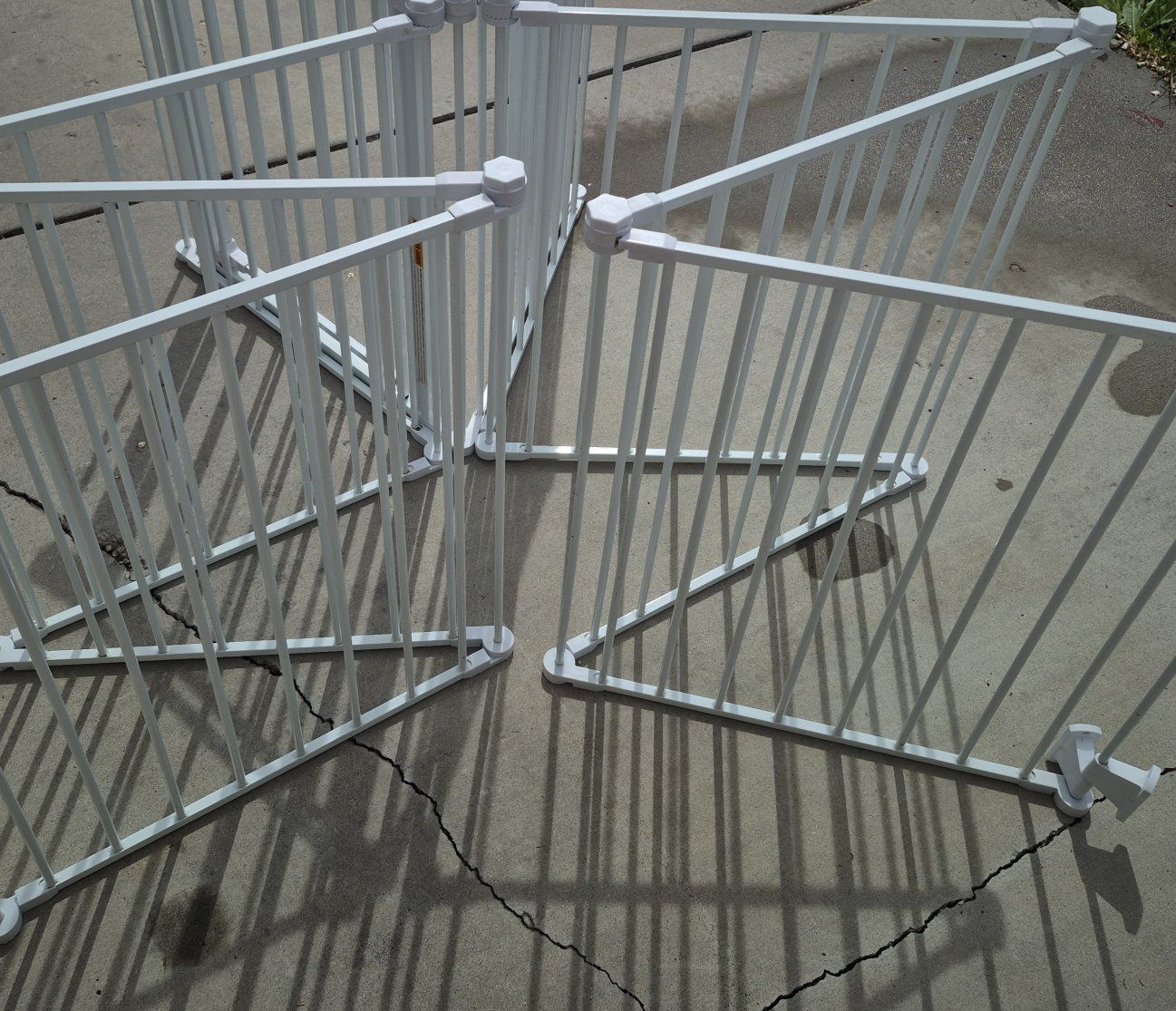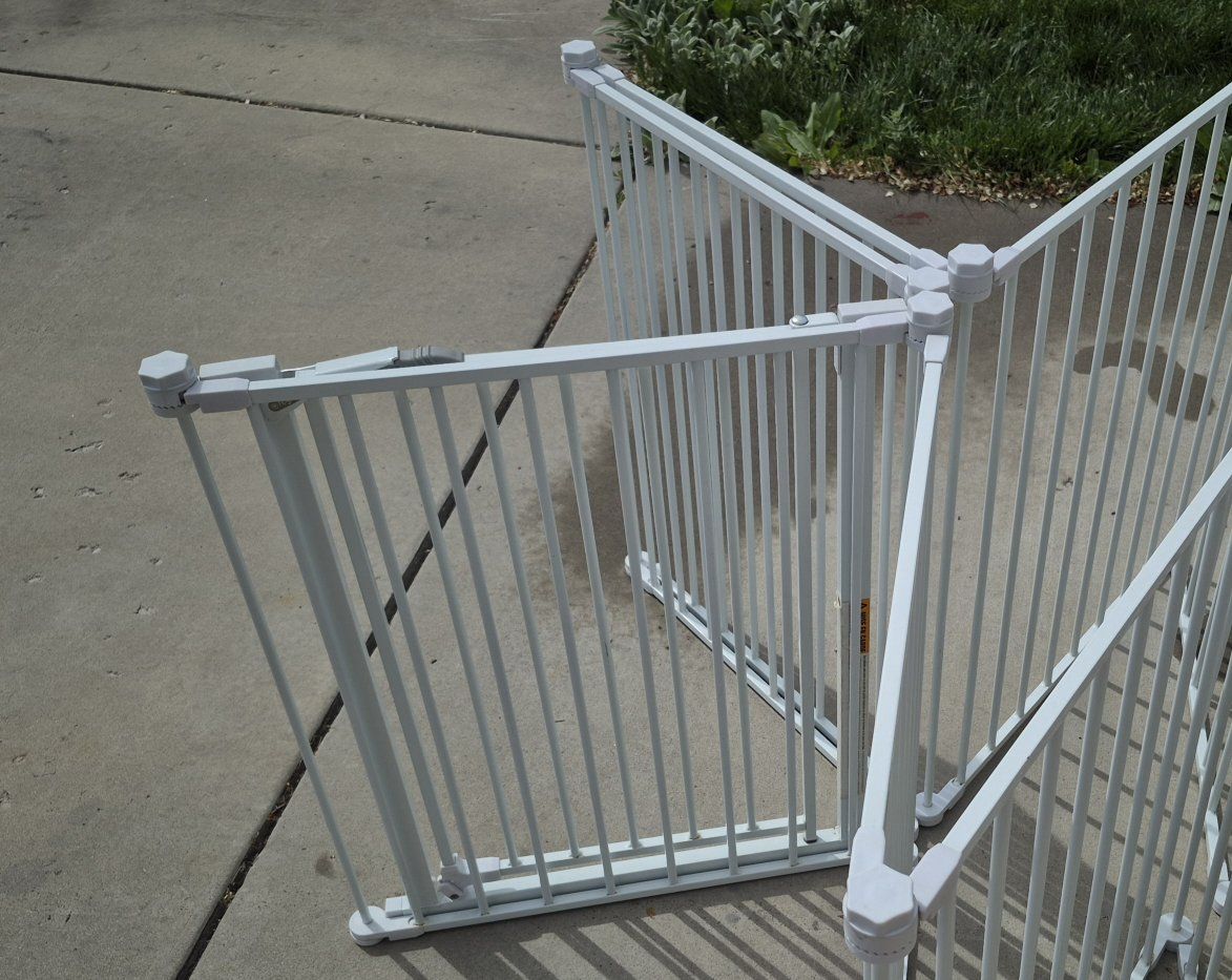 VenmoRegalo 4-IN-1 Play Yard & Superwide Safety Gate Playpen 8 panels with a door. 192 inches long. Each panel is 28" tall. Adjustable, panels can be added or removed. White metal. Clean, Great Condition!