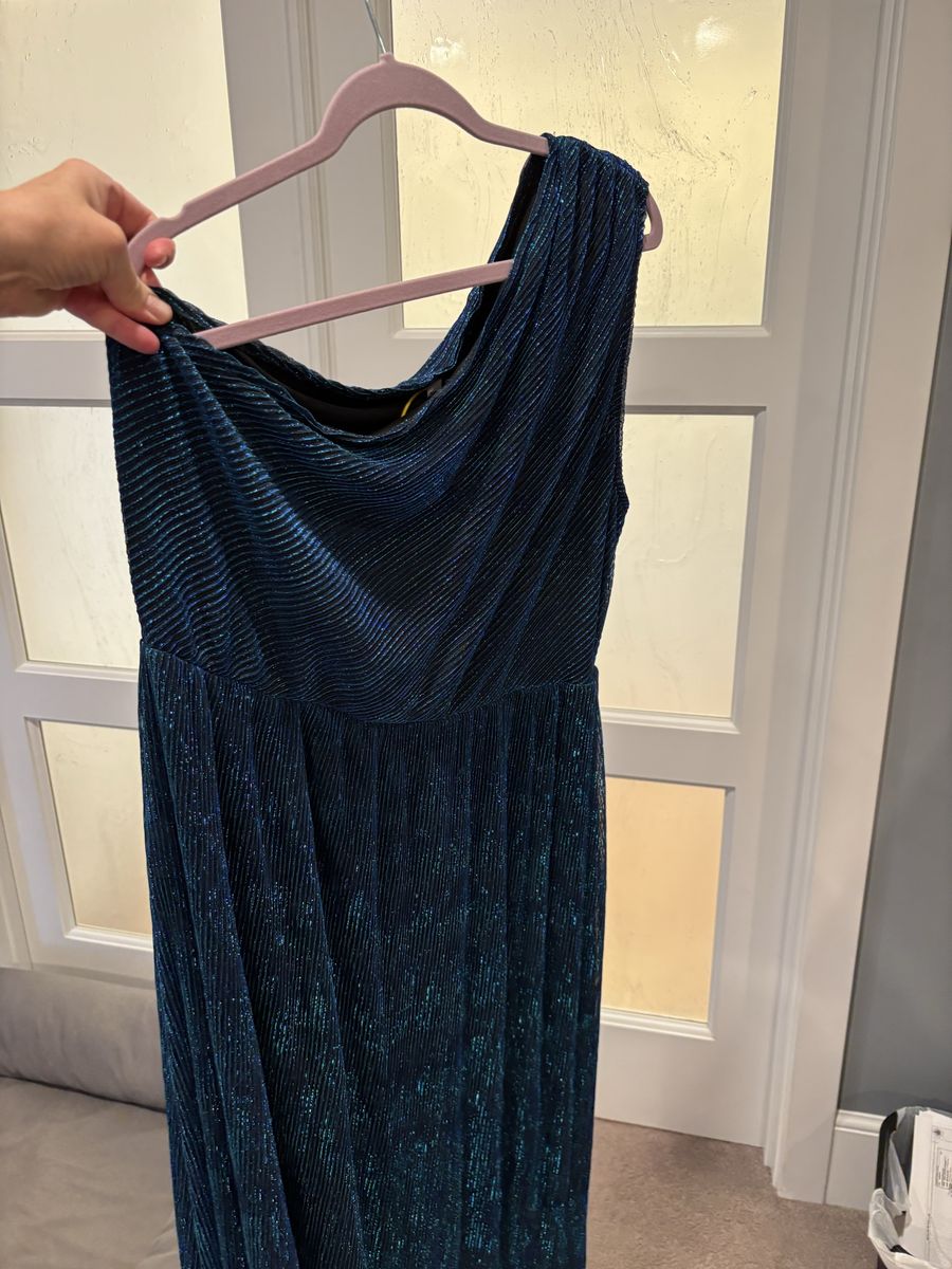 ApplePayBrand new dress for prom or formal occasion - never worn. One shoulder design. Shimmery blue. Size 2XL, stretchy fabric. Elastic waist. Very lovely! $50 OBO