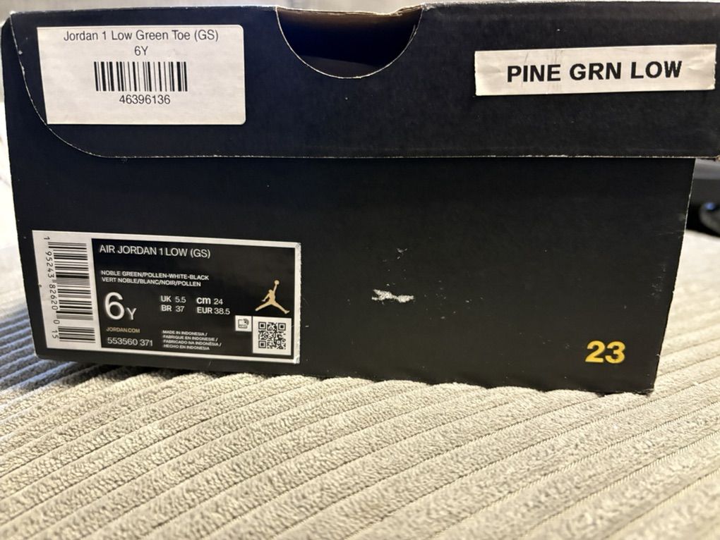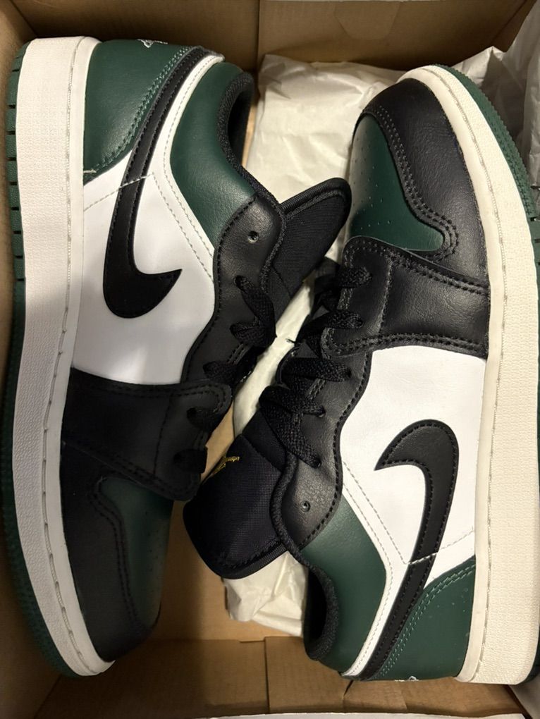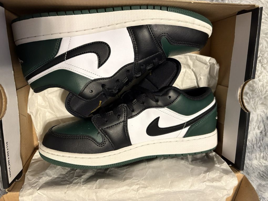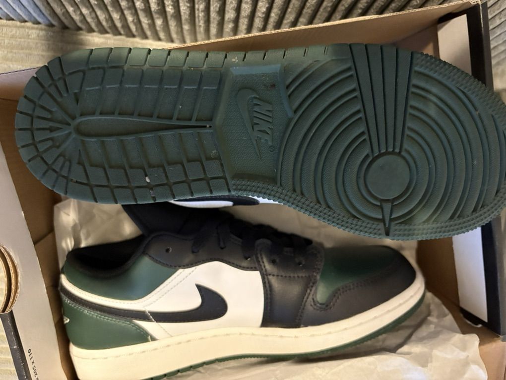 Jordan 1 lows in pine green/black/white, size 6y. These are in excellent condition and basically brand new, only worn once or maybe twice so the bottom is a tiny bit dusty but other then that they are very clean. Bought them from footlocker but they weren’t really my girlfriends style so now I’m selling them, they are unisex so boys or girls can wear them. Thanks for looking check out my other listings! If it’s up then it’s available, no scammers please, cash or Apple Cash works for me! Thankyou again! Willing to negotiate