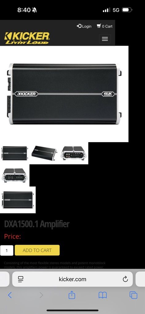 Have a very nice and powerful amp here made by kicker, it is the Kicker DXA1500.1. When I first bought it, it was nearly $500. I used it to power my 2 12inch pioneer champion series pro subwoofers, and this amp is so amazing, it was worth everything penny, however after 7 years my subwoofers gave out on me so I’m left with the amp and the enclosure sadly. It’s pretty old and they don’t sell these anymore and I don’t want to have it posted for along time, so I priced it low in hopes of selling it quick, thanks for looking! Check out my other listings, no scammers please!