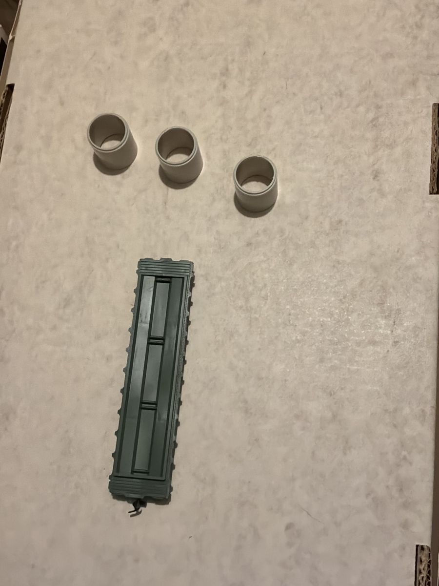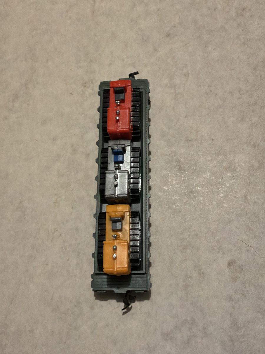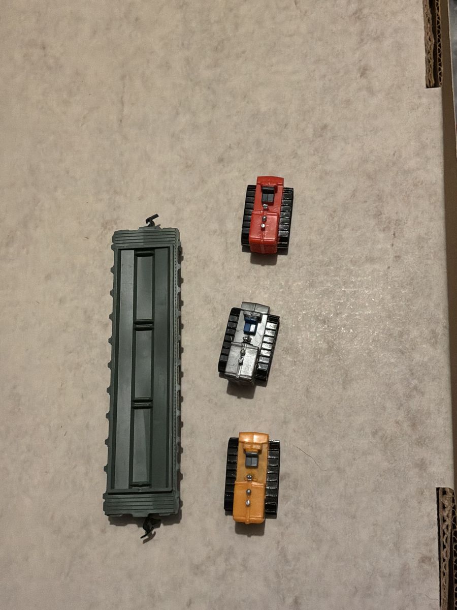 14 Additional Train Cars: Includes culvert pipe cars, bulldozer car, boxcar with sliding doors, and flatbed hauler. Note: Some cars feature upgraded metal wheels.