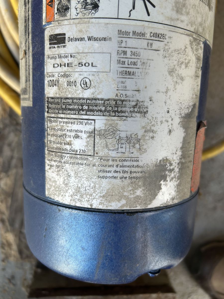 Sta-Rite DHE-50L Self-Priming High Head centrifugal pump. 1 HP.