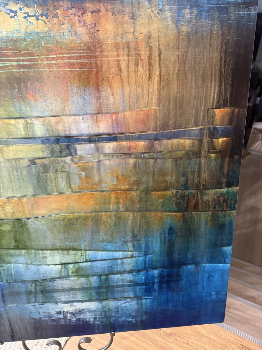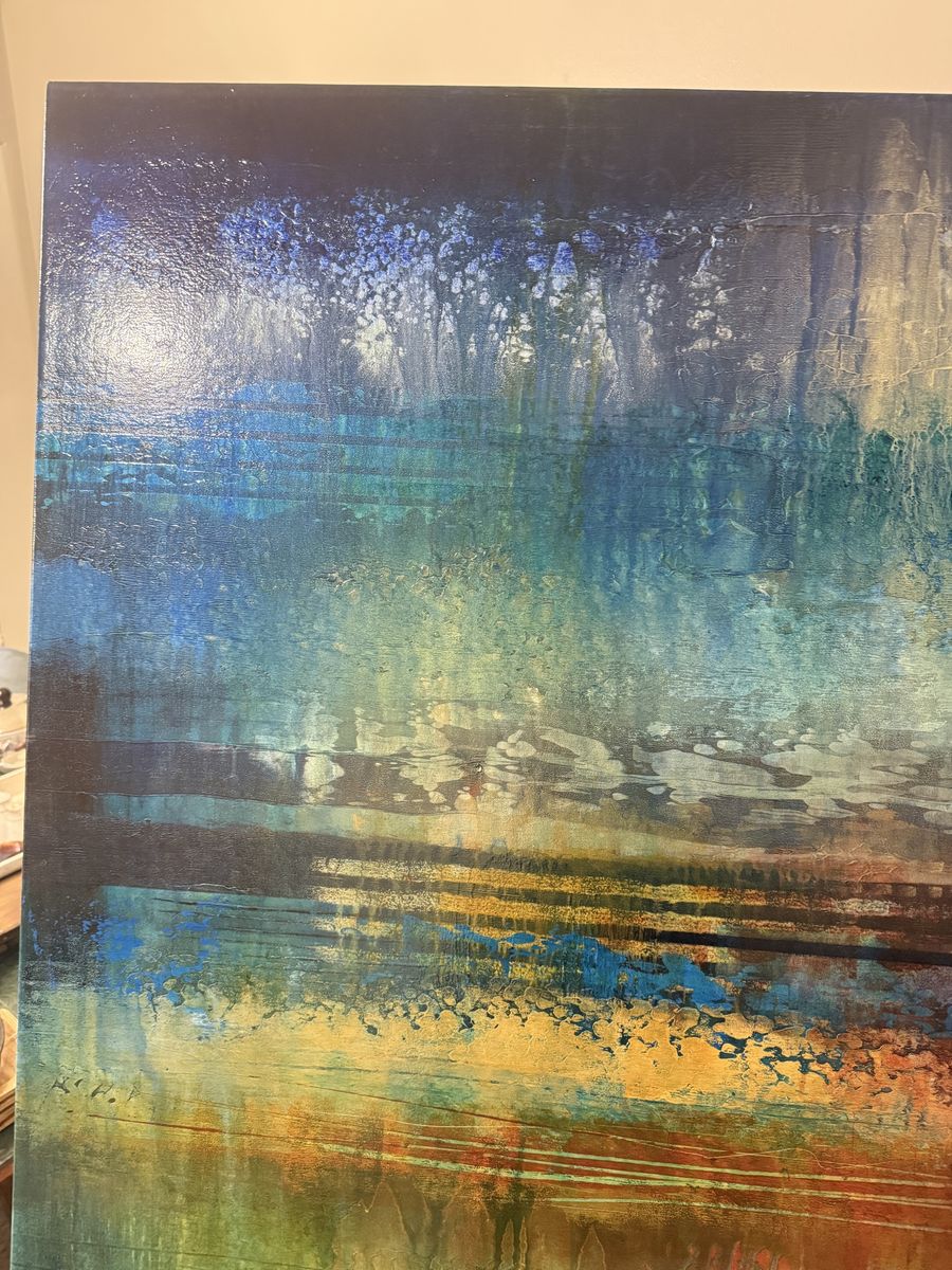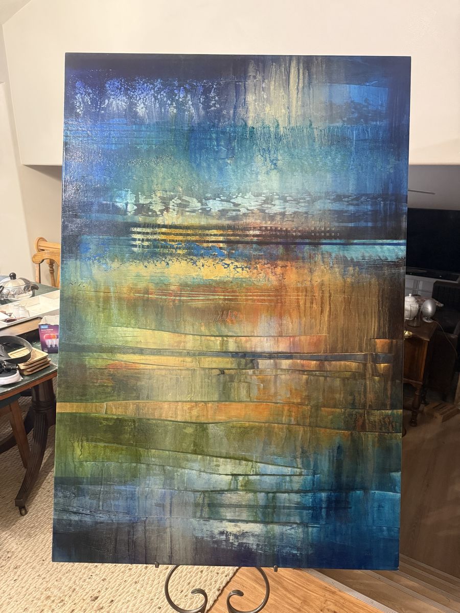 VenmoLarge Original Josiane Childers Canvas - Gallery Statement Piece Opportunity to own a significant original work by renowned contemporary artist Josiane Childers. This piece, titled "Liquid Nature" (2012), is a massive 60" x 40" acrylic on canvas that commands any room it inhabits. Childers is a highly collected artist represented by premier galleries like Renee Taylor (Sedona) and Wilde Meyer (Scottsdale), where works of this scale currently retail for $7,000+. This painting features her signature "horizontal landscape" style with deep, atmospheric layers of azure, forest green, and luminous gold. The scale is perfect for a vaulted living room, executive office, or high-end staging project. The painting is in pristine condition and is signed and titled by the artist on the back of the canvas. Price: $5500 obo Dimensions: 60" x 40" Artist: Josiane Childers (BFA SUNY Purchase) Title: Liquid Nature