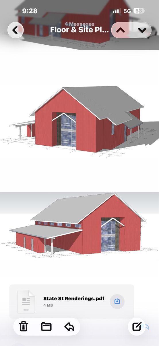 55’x75’x22’ tall approximately metal building. Look at the pictures and the sizes.