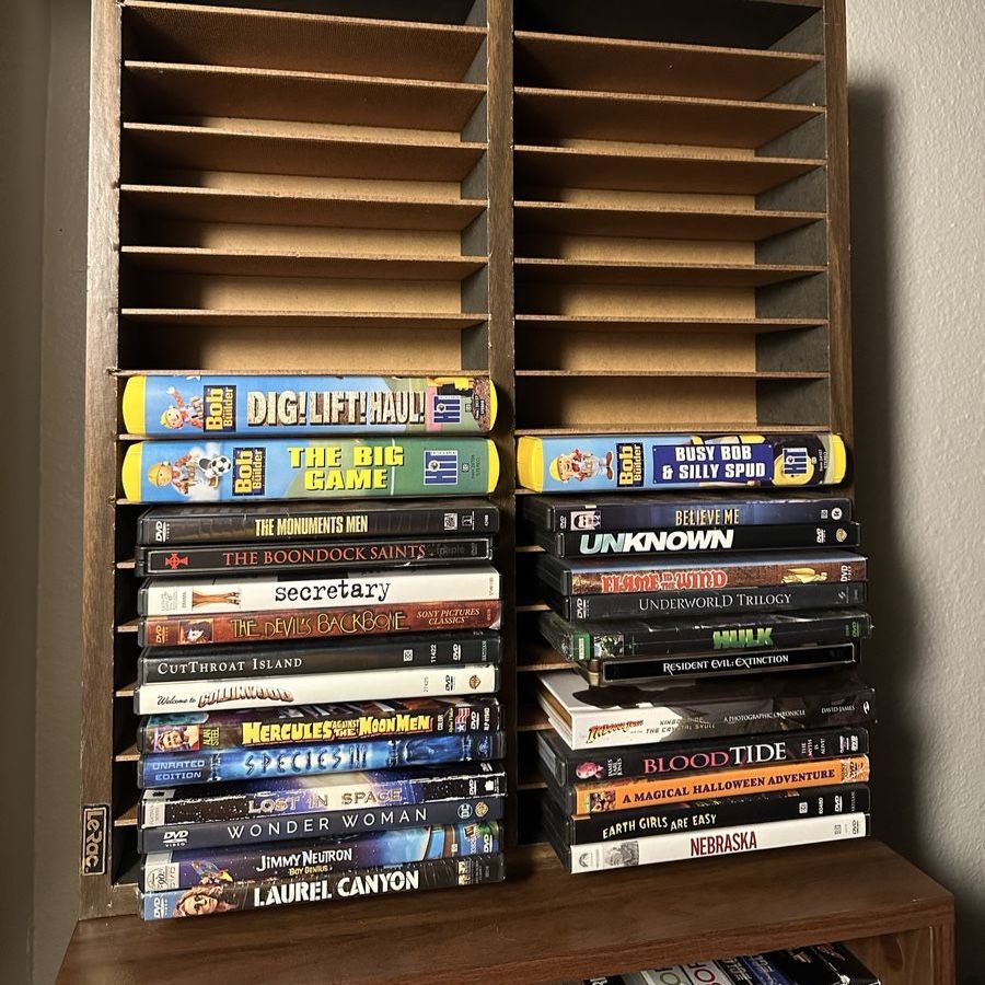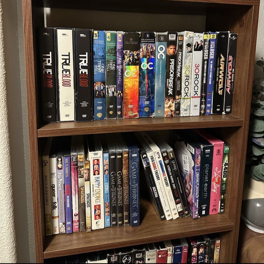 TV show seasons for sale Most are $5 each or around that DVDs are $3 to $5 Shelf also for sale