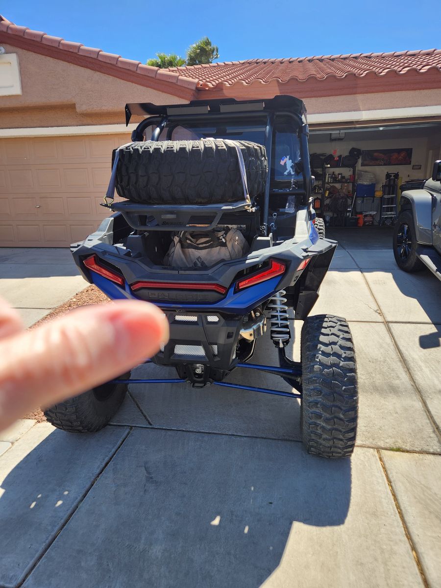 Has front window, roof, rear window, hydraulic spare tire/storage rack with matching wheel and tire, lighted sizmic breakaway mirrors,.