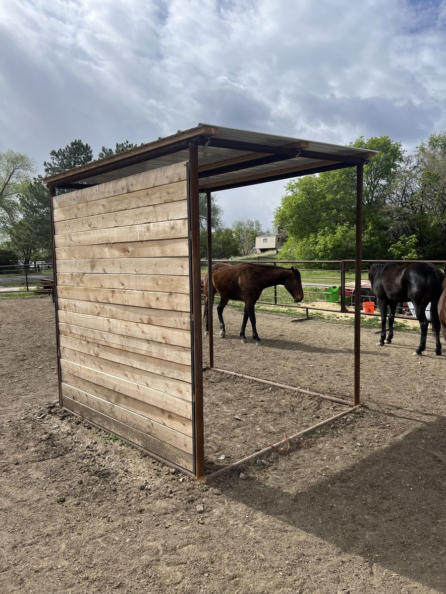 VenmoVery solid and well built. Made from drill pipe and 2x6’s. Fully welded seems. Only about 6 months old. 8’6” wide 8’ deep 8’6 tall in the back 9’ tall in front