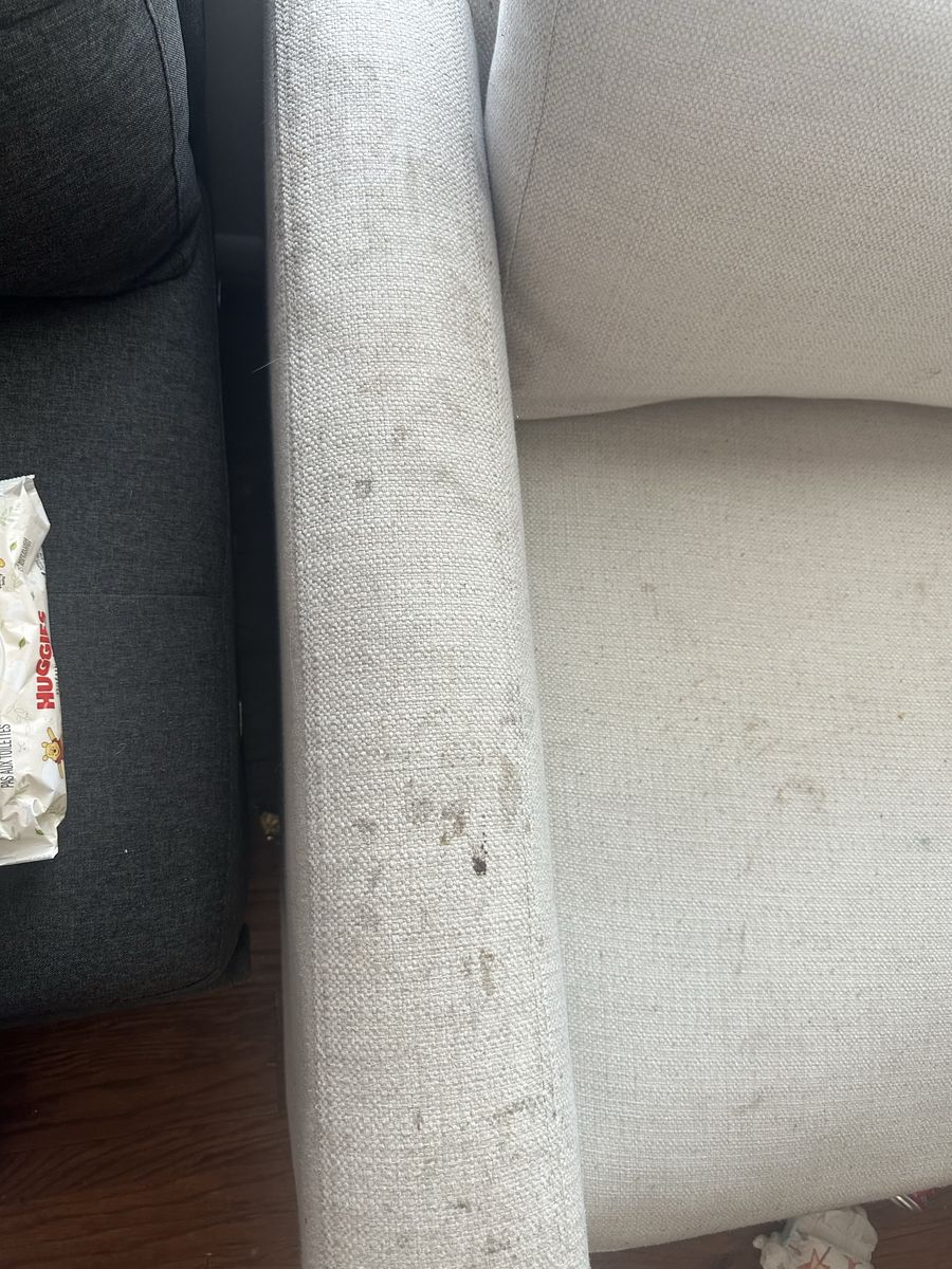 VenmoWhite couch, needs to be cleaned but other then that still in great condition, it’s super comfortable. Cushion covers do come off and are machine washable. Must bring someone with you to load it as I won’t be able to help.