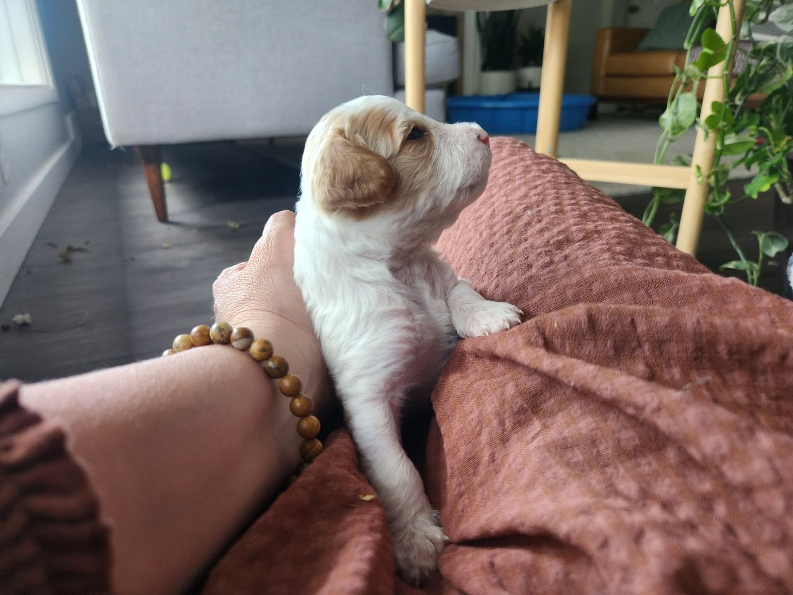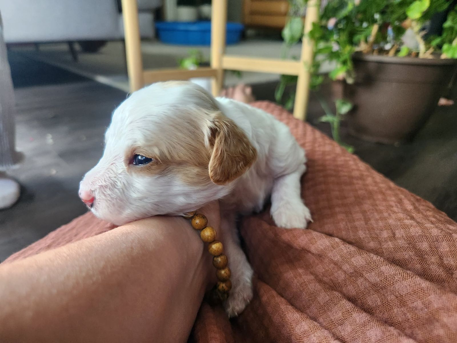 Cavapoos are known for being friendly, intelligent, and great with families. These puppies are playful, affectionate, and well-socialized.