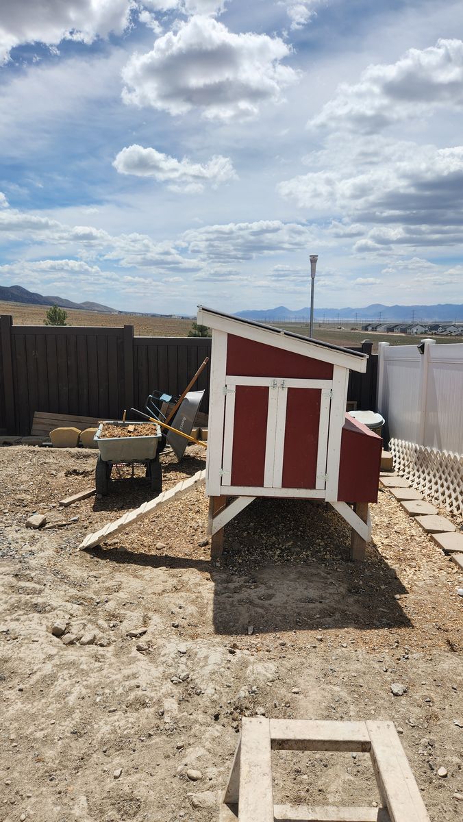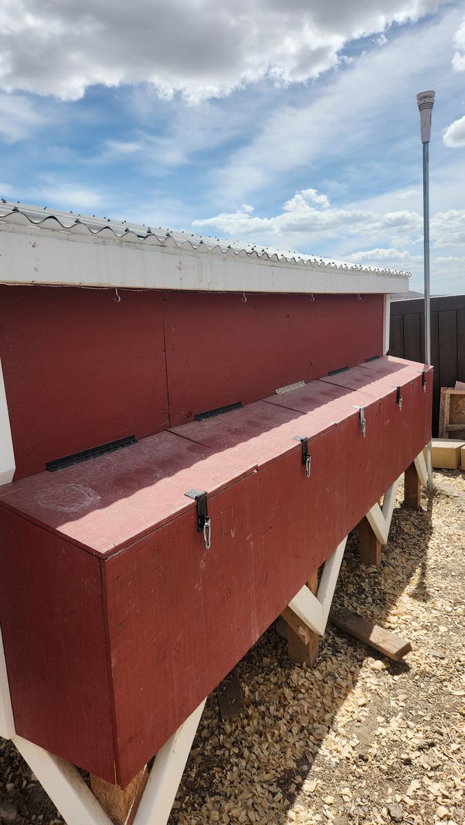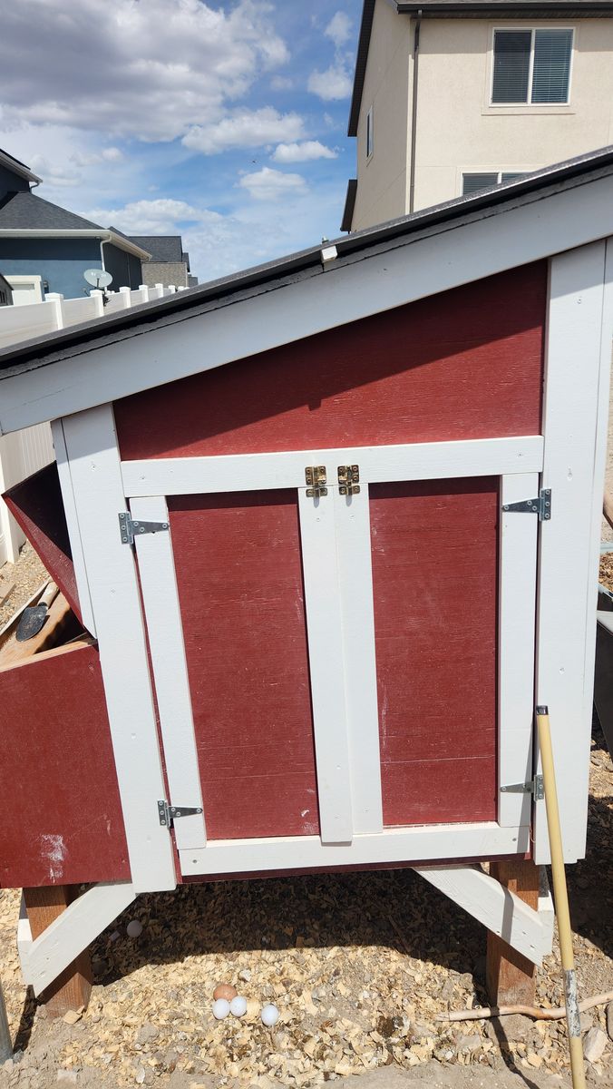 PayPalFantastic chicken coop, custom built last summer. This coop measures ten feet long by 4 feet wide, has 1ft² nesting boxes for all your hens. Features a double layer hardware cloth floor providing ample ventilation and easier clean out options. Removable 8 foot roosting bars for easy cleaning and disinfecting as well. Each side has double doors secured with latches, and the chicken door has a latch for security as well. Red color is actually wood stain to provide better durability (willing to provide the extra so can touch up as often as you like.)I LOVED this coop (still do!) But we have stopped having chickens for now and we have no use for it. Located in Eagle Mountain City center.