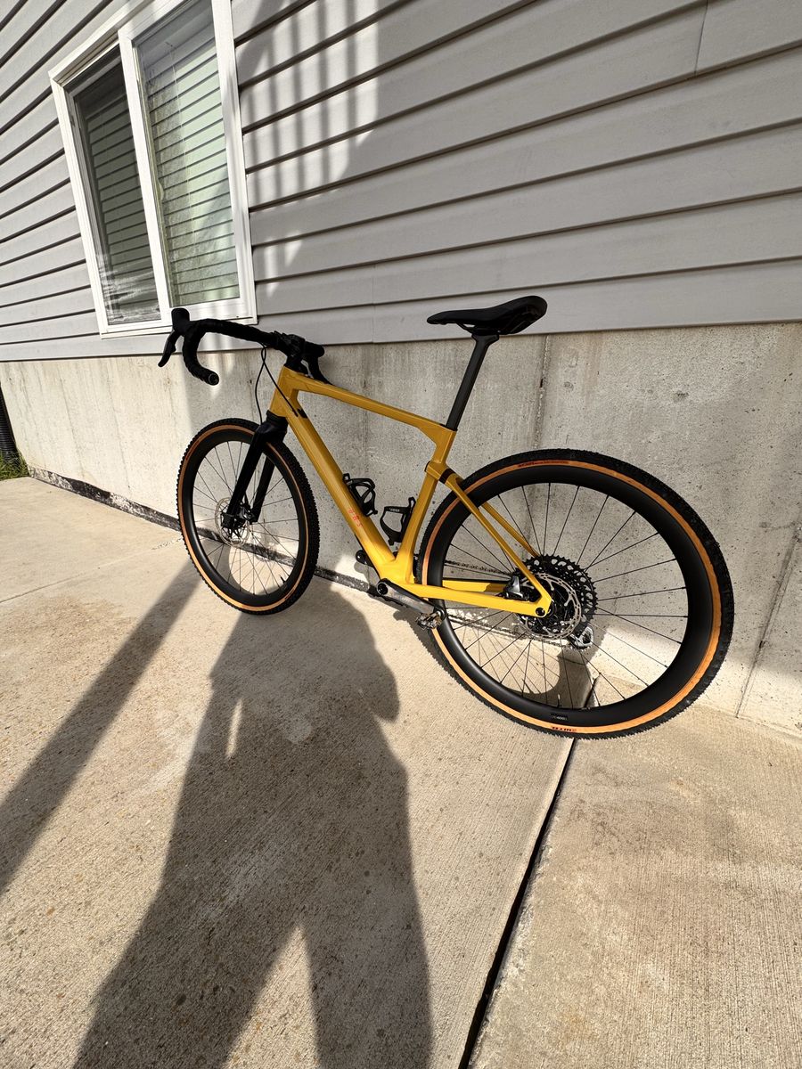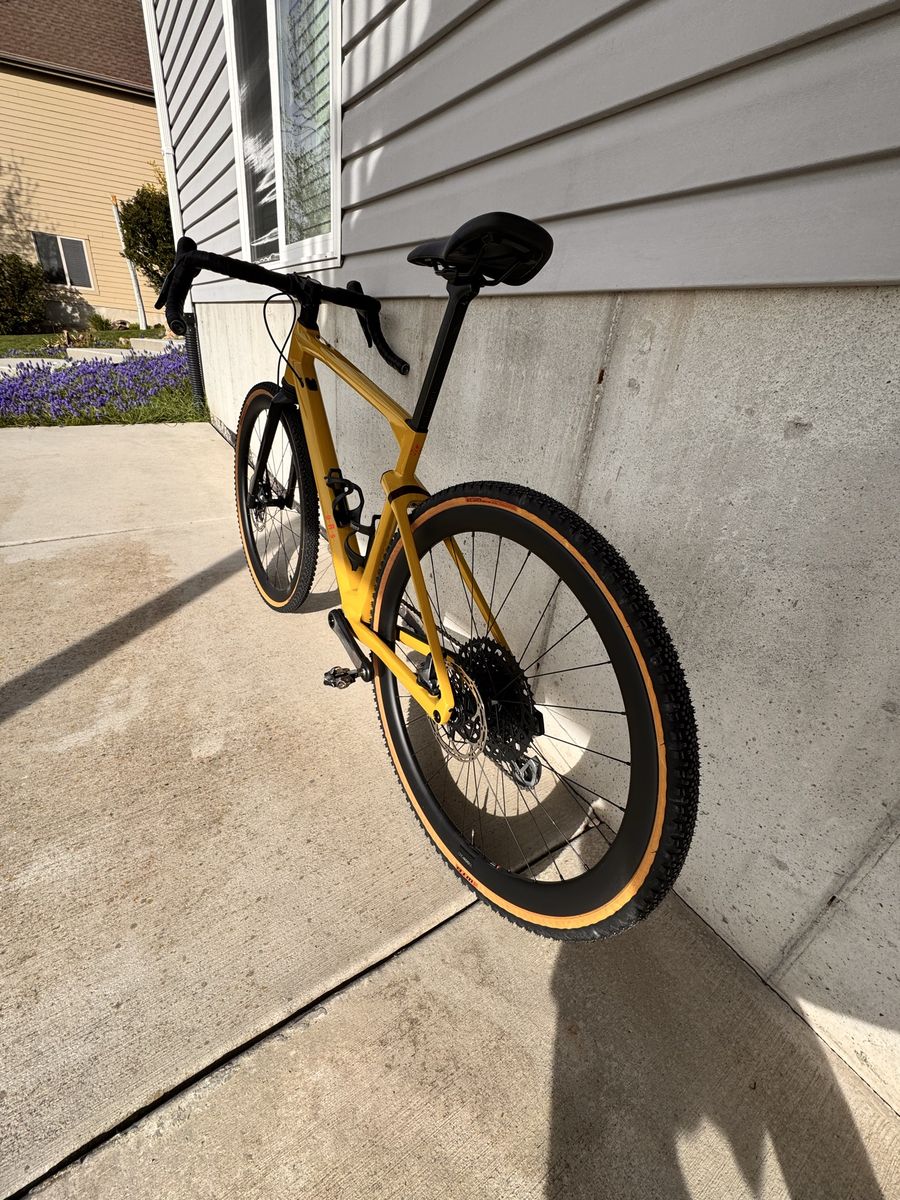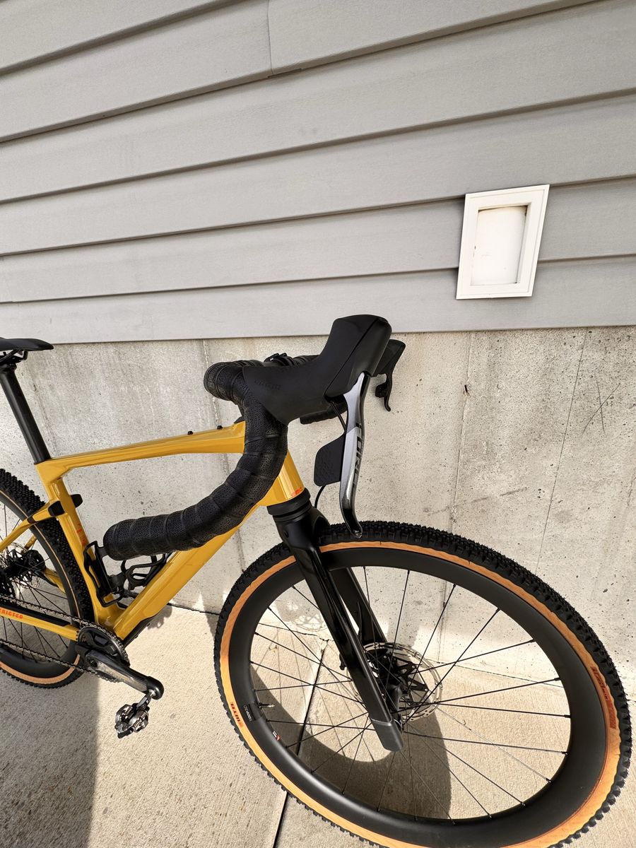 Brand new only test ridden on the road Carbon urs frame with micro travel in the rear and 20mm carbon suspension fork with lockout SRAM XO1/ force axs Quarq power meter SRAM force brakes/ centerline x rotors Whisky carbon bars Carbon wheels Size medium Pedals and wahoo mount not included