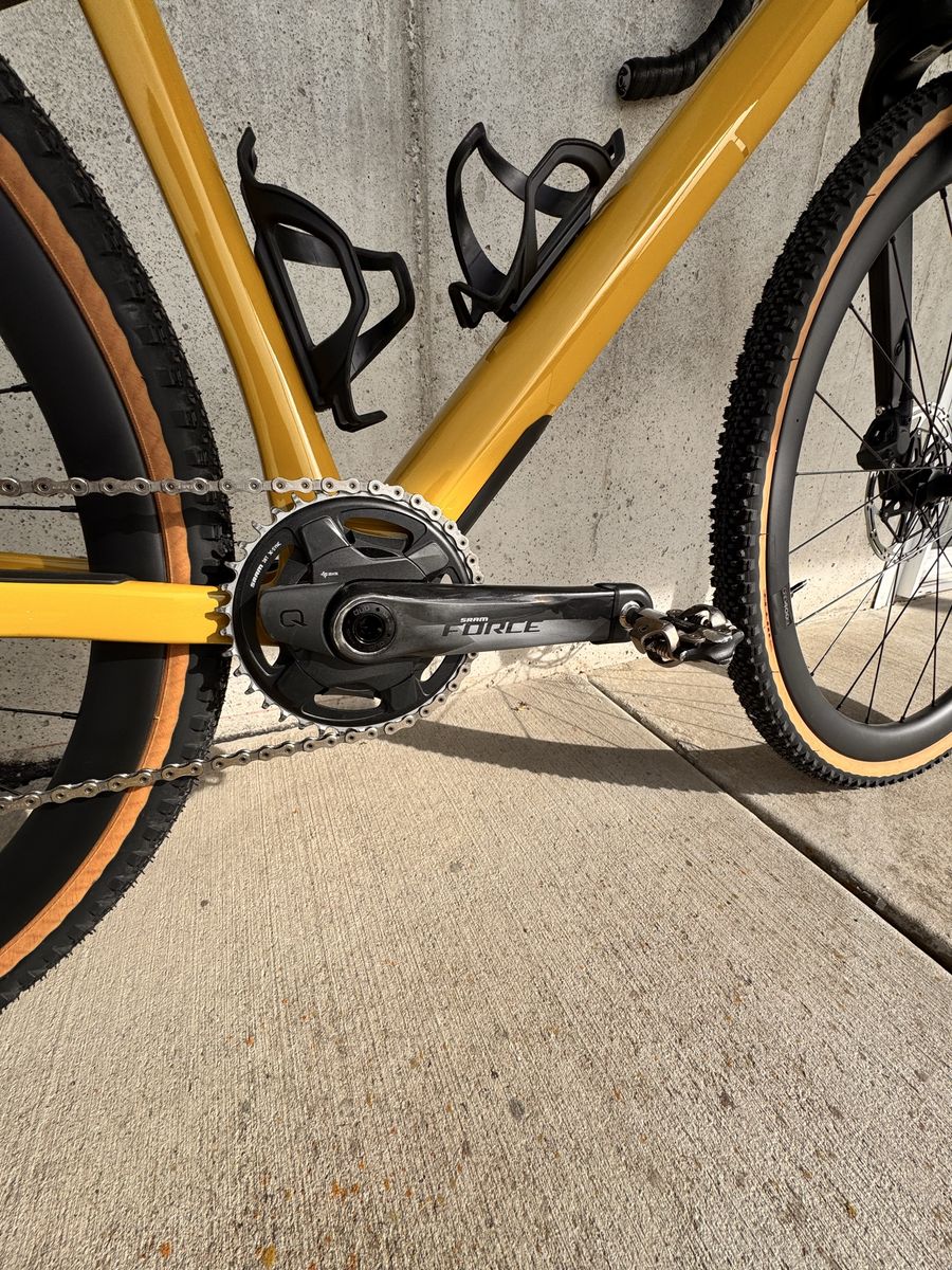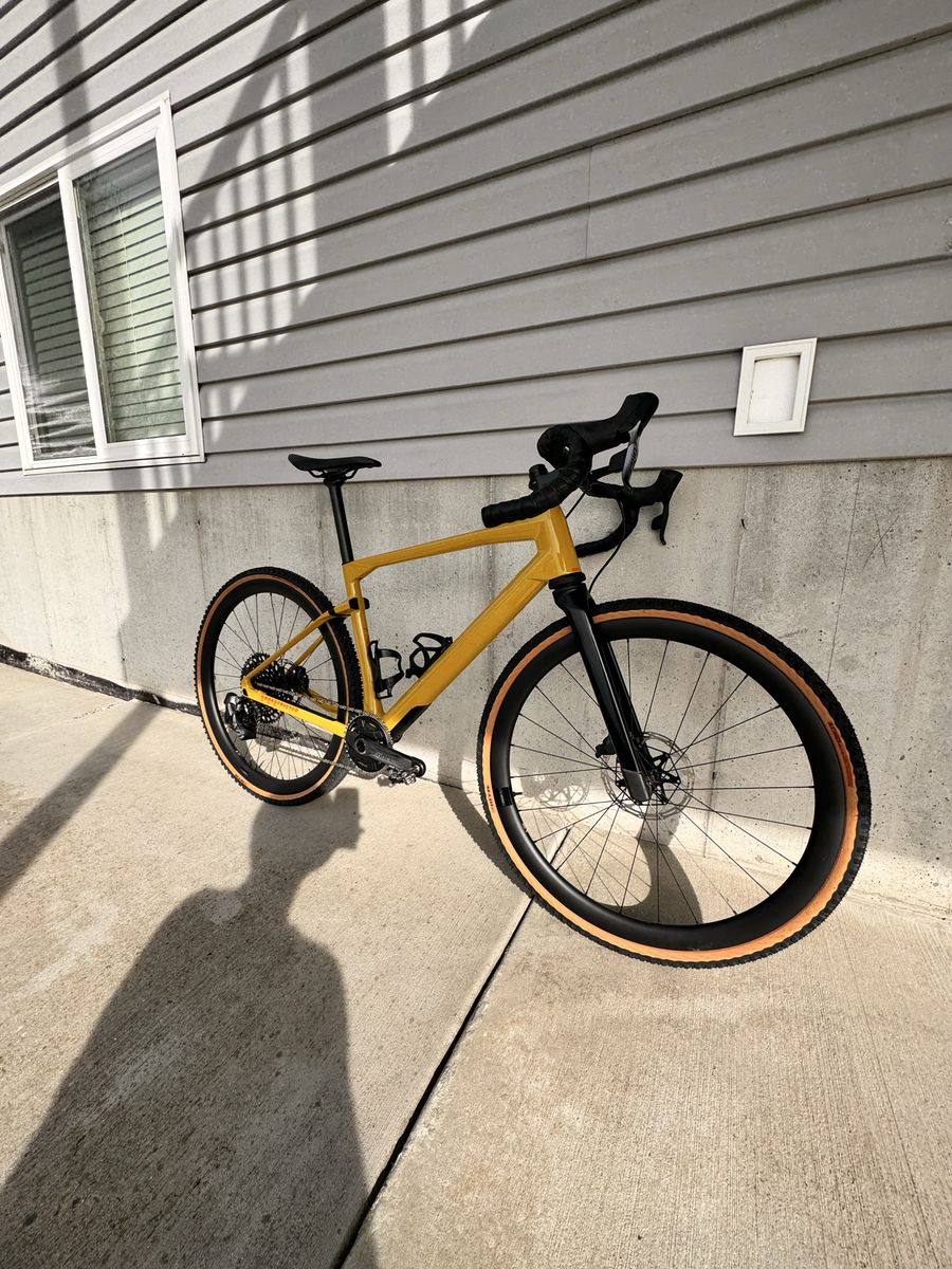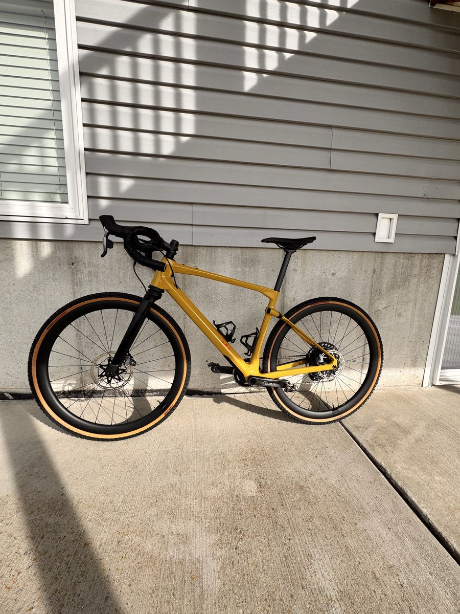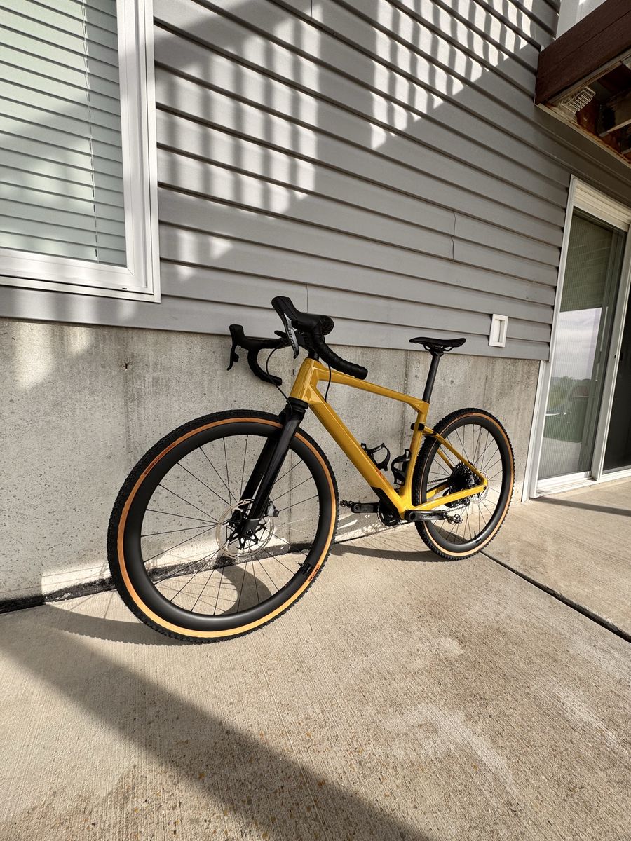 Brand new only test ridden on the road Carbon urs frame with micro travel in the rear and 20mm carbon suspension fork with lockout SRAM XO1/ force axs Quarq power meter SRAM force brakes/ centerline x rotors Whisky carbon bars Carbon wheels Size medium Pedals and wahoo mount not included