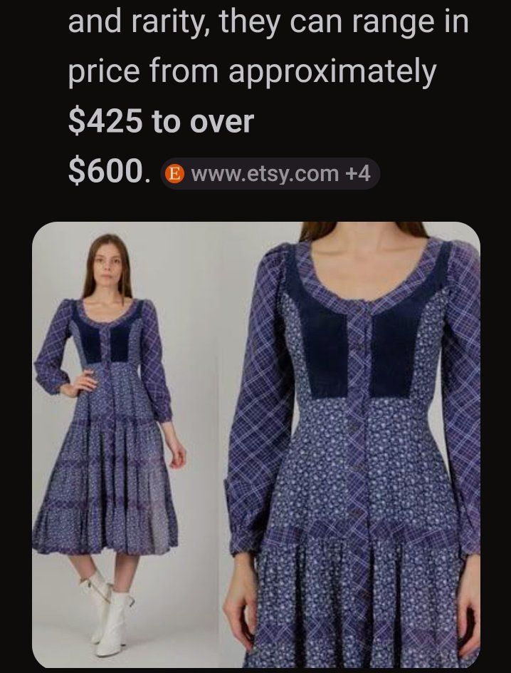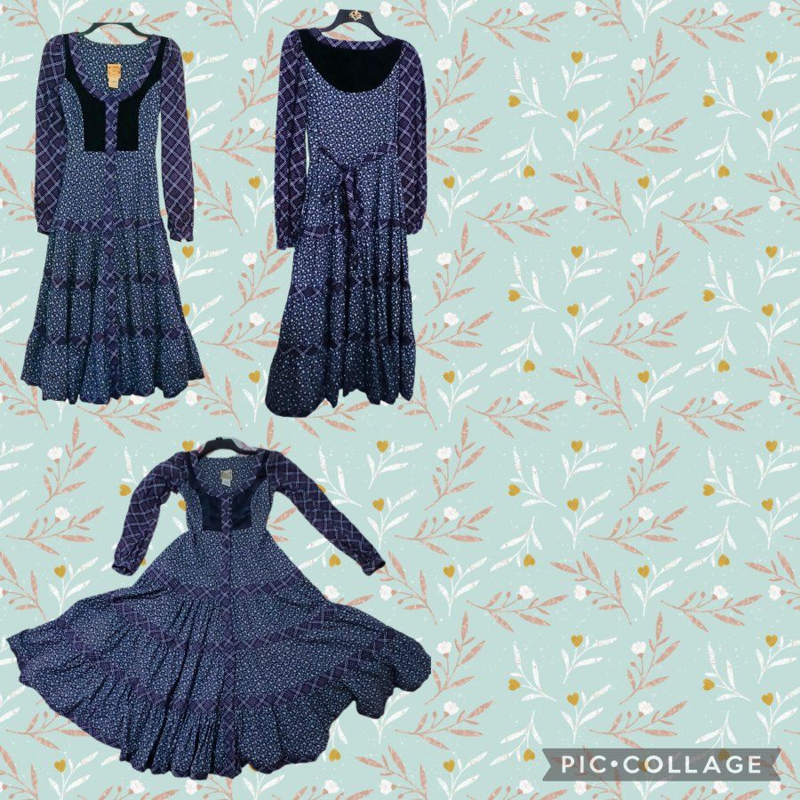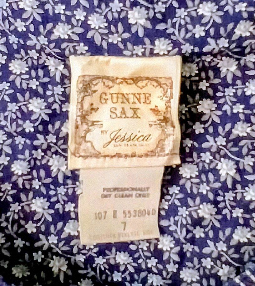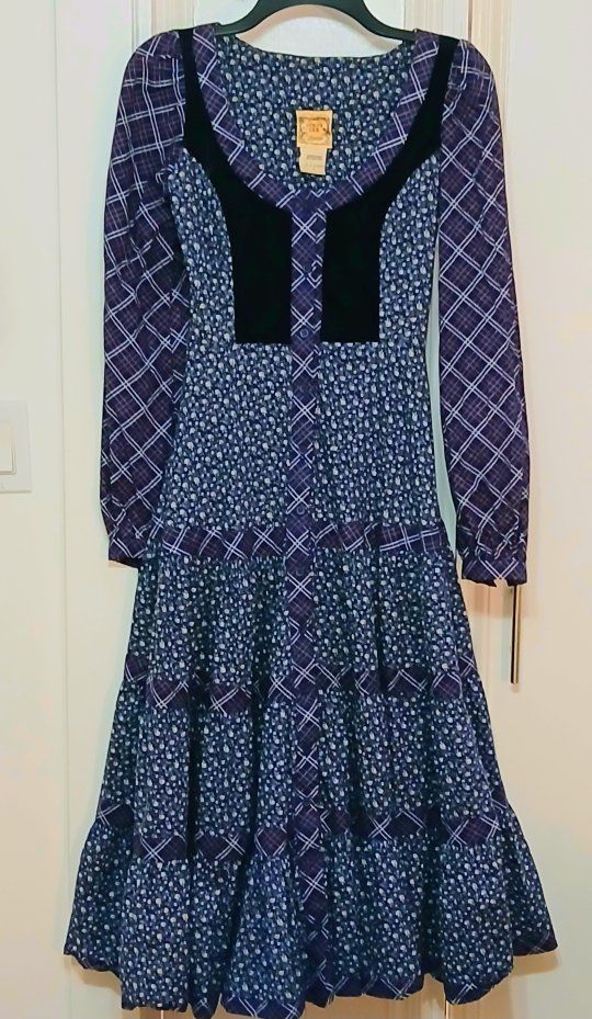 Vintage, 1970's Gunne SAX by Jessica dress, size 7, New Condition. only worn twice , bought new, original owner. This dress has been carefully, stored away for 48 years. Blue Calico, full skirt, velvet Bodice, Buttons go all the way down. Ties in the back. GREAT VINTAGE DRESS!! cash only, local pickup in Washington Ut. $ 350