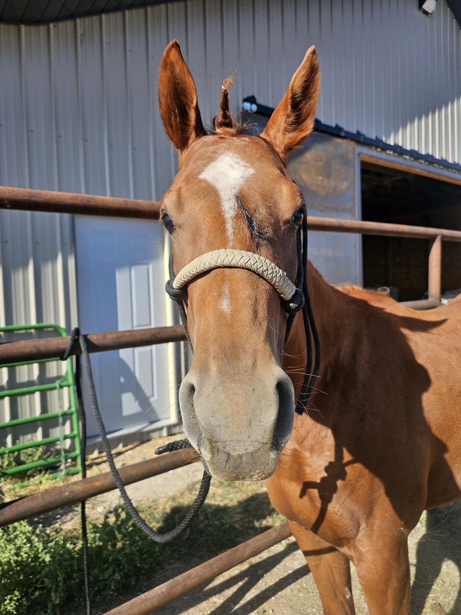 VenmoMeet Annie, the sweetest filly there ever was. I bought her around a year ago,since then we have done countless hours of ground work. She's been saddled a hand full of times and takes a bit. She loads, unloads and stands tied. picks up her front feet like a champ and we have been working on her hinds. She's broke to lead and my favorite filly I've ever worked with. she was born with a crooked hoof on her hind right leg. she is still sound and good to work,I haven't had any issues with it. the vet said that it shouldn't effect her in the long term, especially as a ranch or trail horse. I'm selling her because I am a full time college student and I don't have the time to get her where I want her. Asking 1500 but I'm very flexible