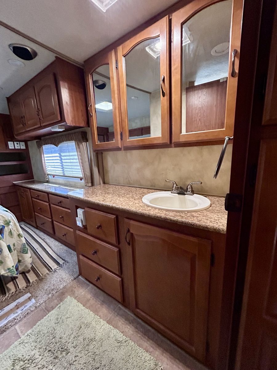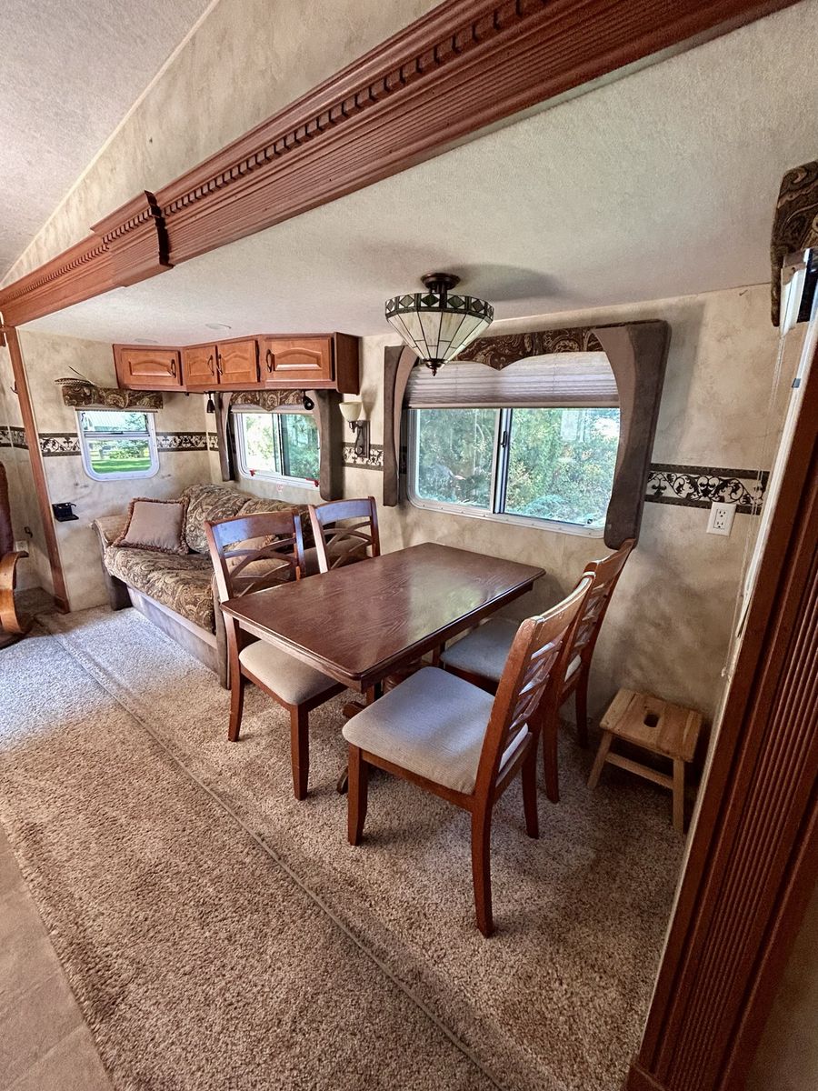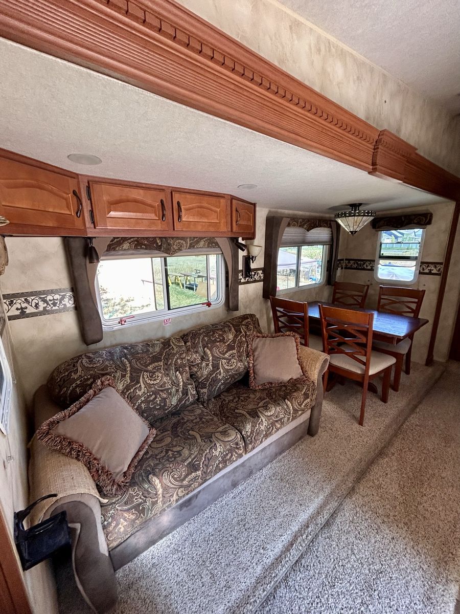Silver Fox edition, model 29-5’, 4 seasons, aluminum super structure, 2 solar panels mounted on roof, 2800 Oman generator, Olympian Ware 8 catalytic heater for cold weather, semi trailer tires Samson Loadrange G in good shape. Trailer is in great shape, 2 slides, no leaks, set up for off grid or full plug in.