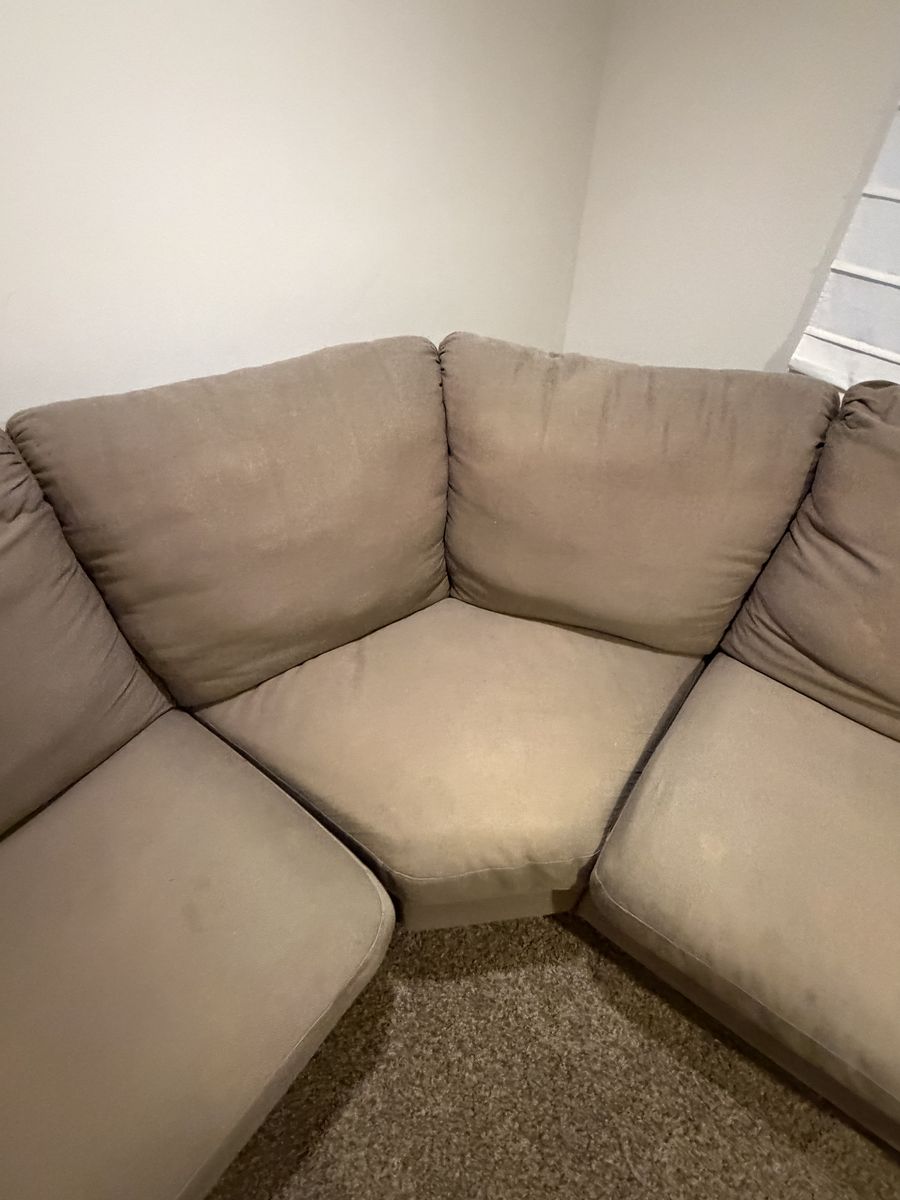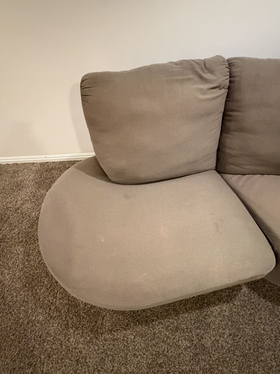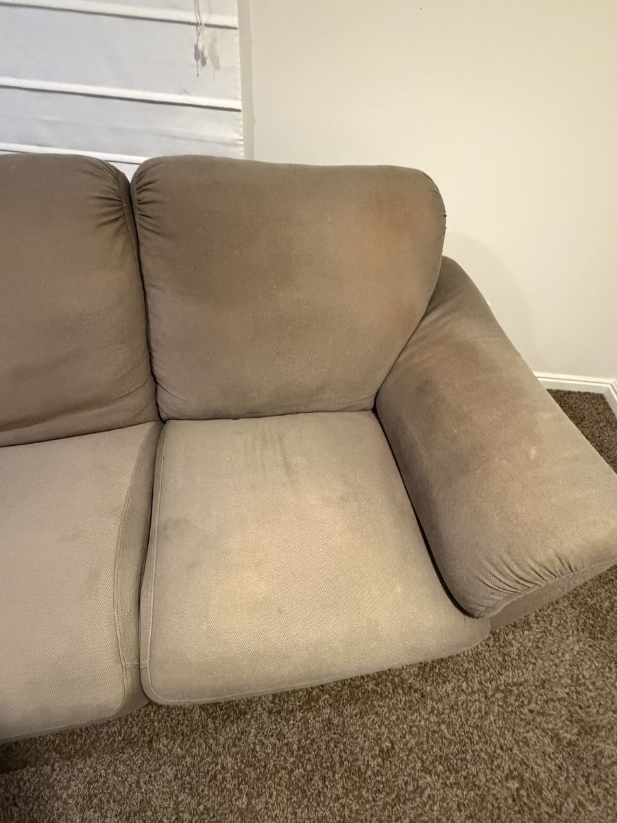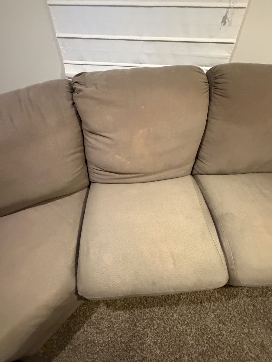 ZelleNice and comfortable couch. No pets on the couch. Some sun bleaching