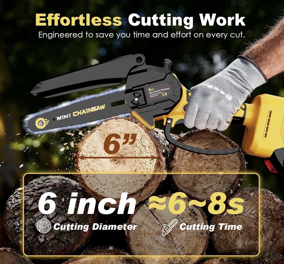 VenmoMini Chainsaw Cordless 6 Inch – 21V Battery Powered Electric Pruning Saw with Automatic Oiler, Lightweight Handheld Chainsaw for Tree Trimming Wood Cutting, Gifts for Men Dad, Yellow