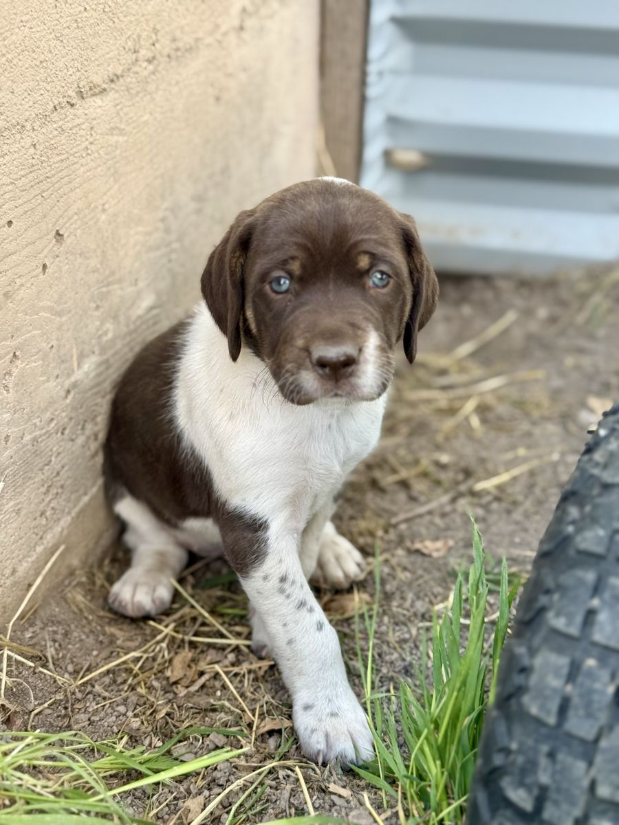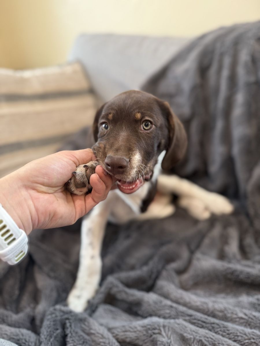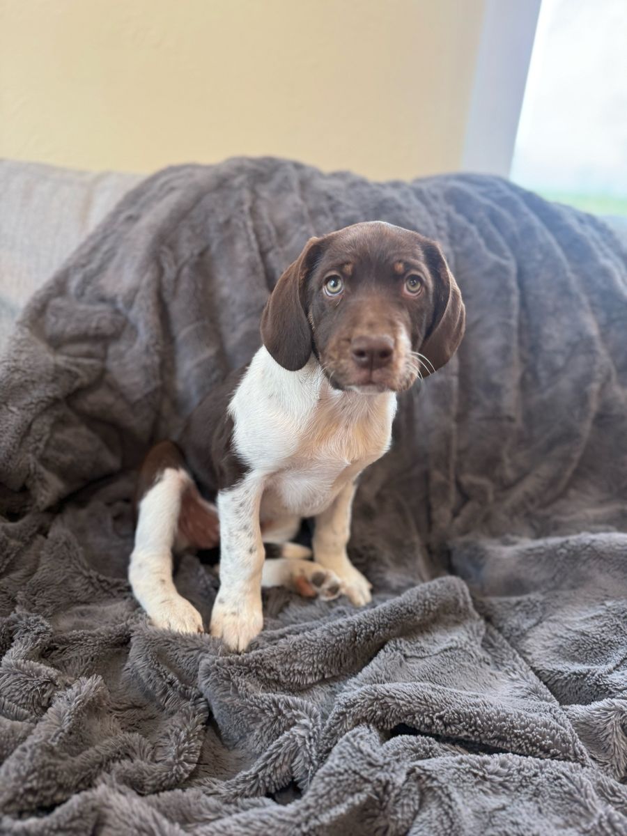 Venmo8-week-old female German Shorthair Pointer / Border Collie mix looking for her forever home! She was born Feb 24th. Super playful, smart, and comes from great parents (mom hunts, dad is a shed hunter). Will make an amazing active family or outdoor companion. Details: • First round of shots • Dewormed • ENS & ESW training started Come get her today! Message me for more info or to meet her!