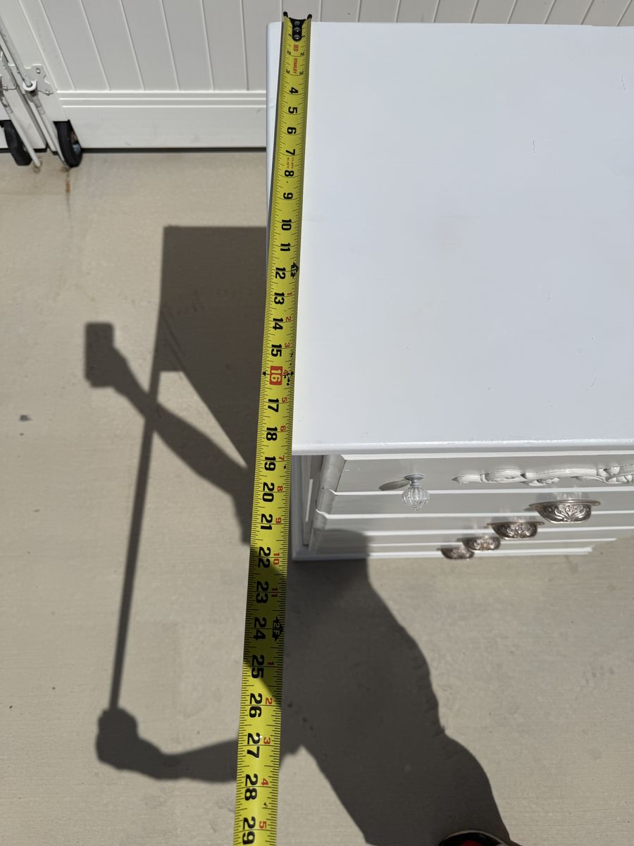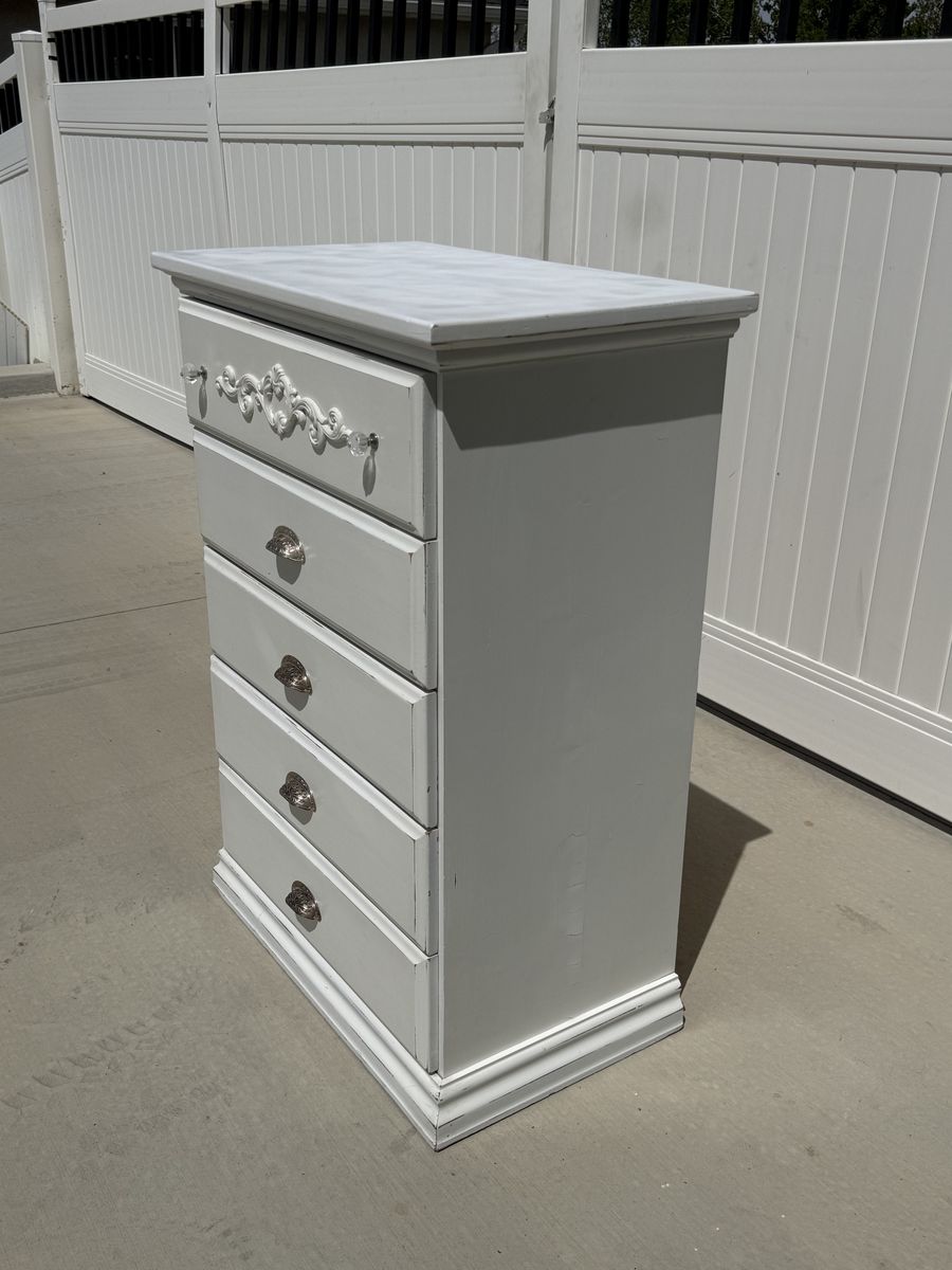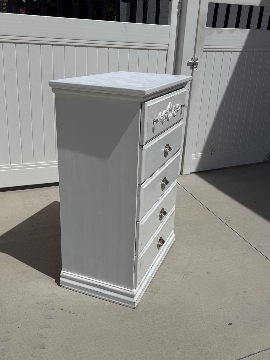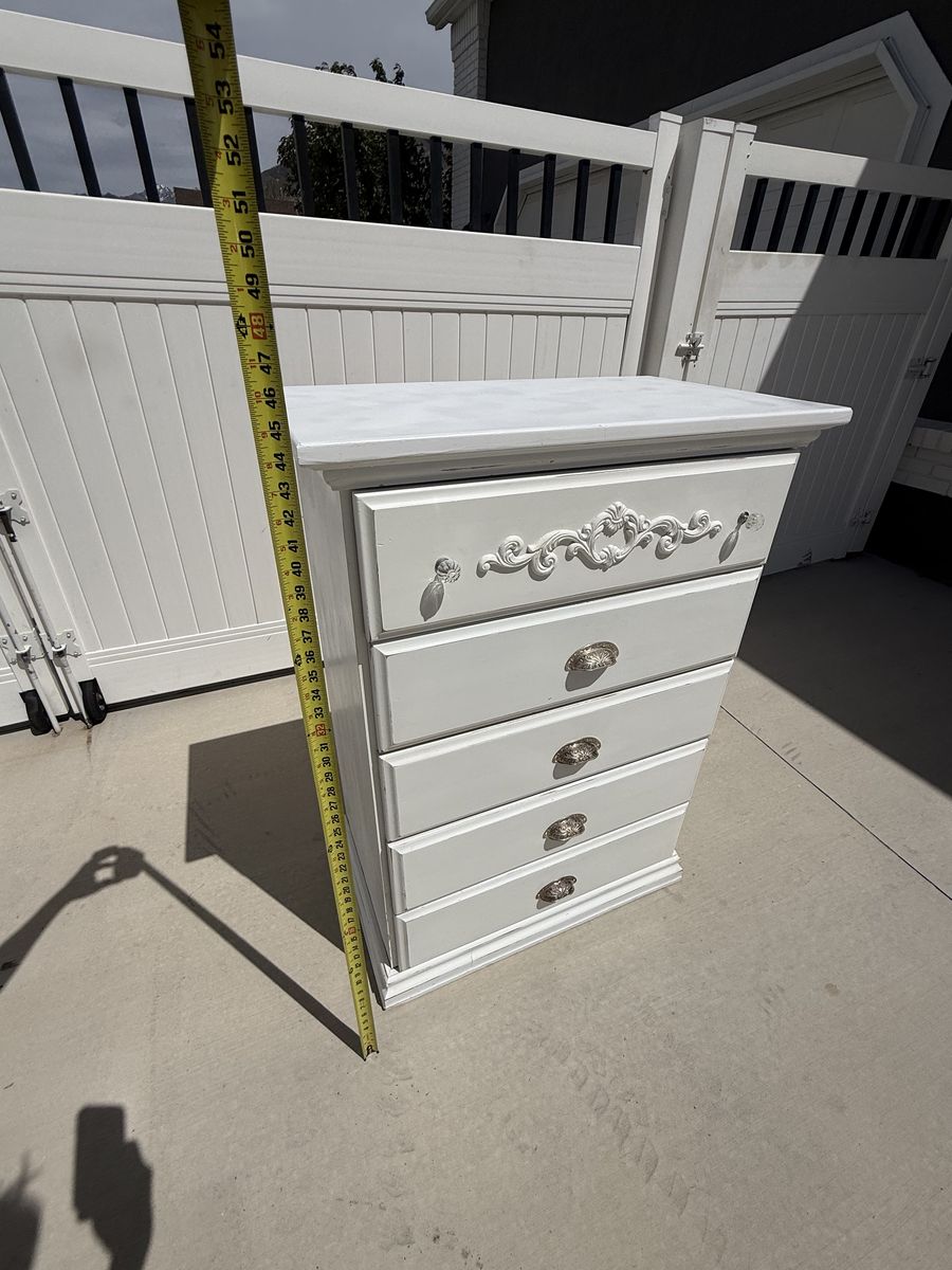 Nice solid wood dresser with a clean white finish and some subtle vintage-style detailing on the top drawer. It’s sturdy, well-built, and all drawers slide smoothly.