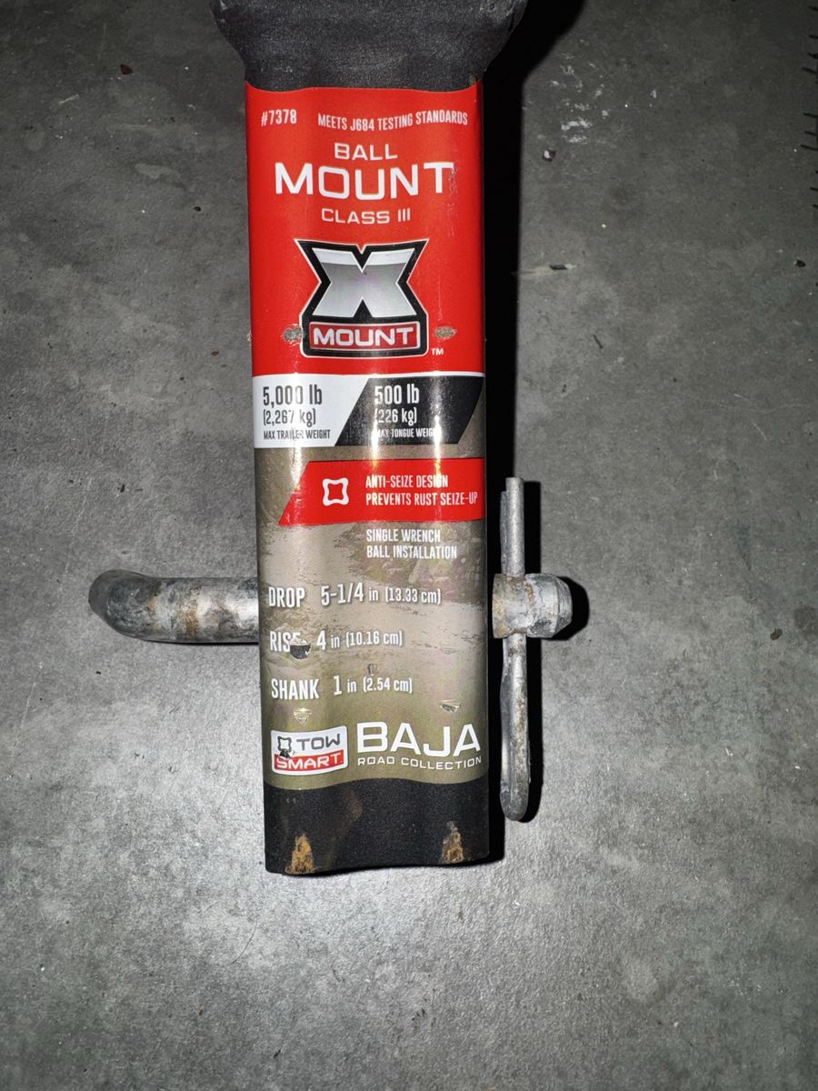 VenmoTowsmart class 3 hitch with a 4” drop and a 2” ball mounted. Used 1 time in near new shape comes with hitch pin as well.
