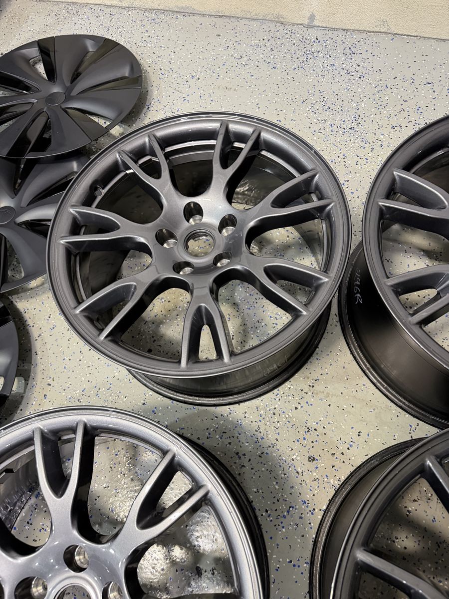 VenmoFor sale is 4 wheels that came off a 2024 Tesla Model S. These are the stock 19" staggered wheels that fit Model S 2021-2026. No tires, just the rims, These have the aero hub caps included, in very good shape, no bends or cracks they are straight. Located in Layton UT or could meet in SLC as well. Thanks