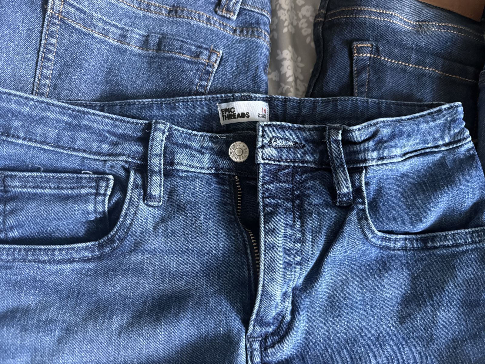 8 pairs of girls pants 4 pairs are size 12 and 4 pairs are size 14 brands are Victory Heart, Lucky brand, DKNY, YMI girl, Epic threads. All great condition hardly warn or not worn at all, no holes no stains just a little wrinkled from sitting in a drawer. Selling because my daughter decided she doesn’t like wearing jeans. Selling all for $30 or each pair $5. Need to sell ASAP. Pick up only located in Taylorsville. Accept cash only