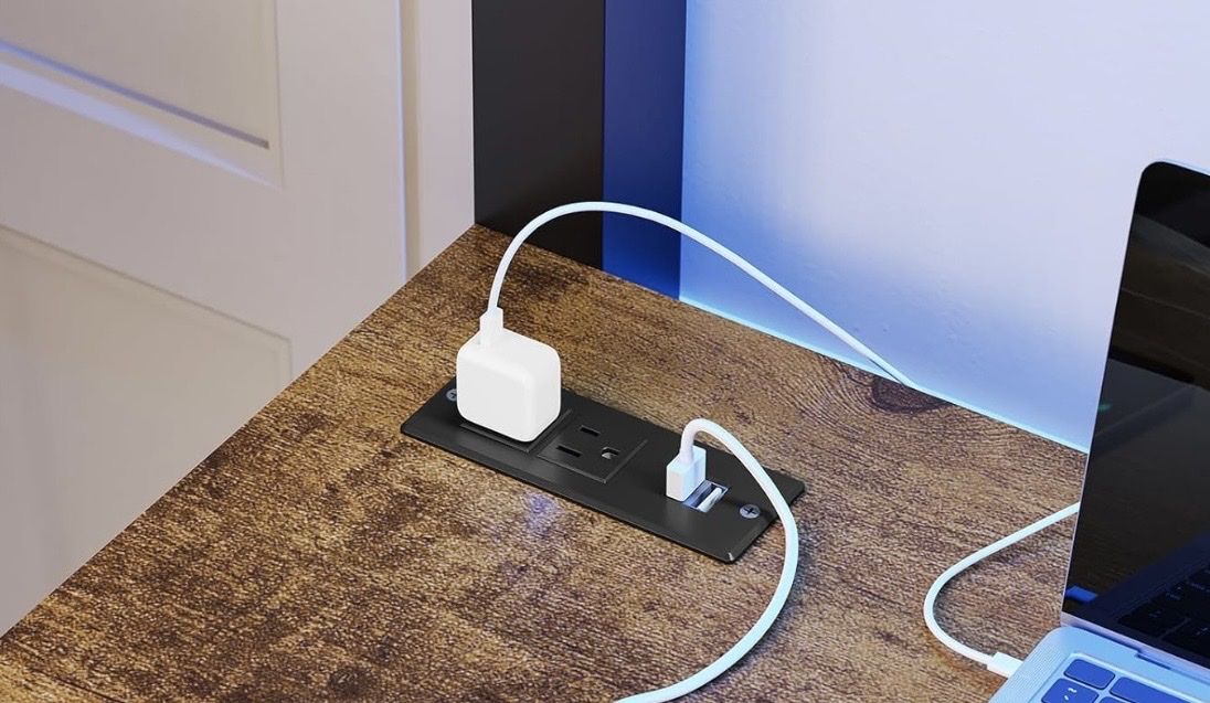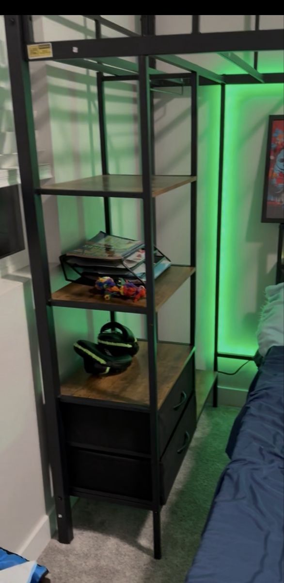 VenmoLoft Bed Twin Size with Desk and Charging Station Metal Loft Bed with Led Lights,Storage Shelves and Drawers Twin Size Bed with Clothes Rail,Safety Guard & Ladder,No Box Spring Needed, dark grey color