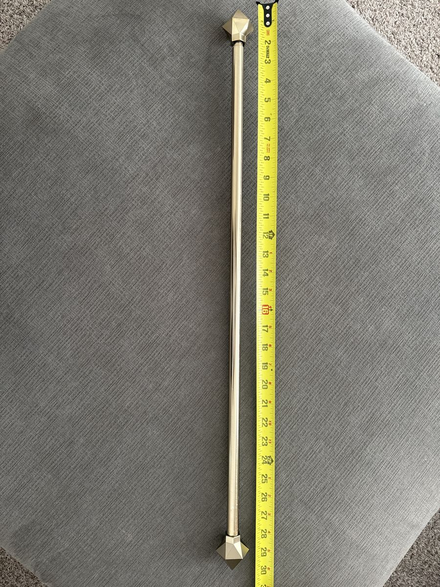 Pillow fort brand pink curtains(42”w X 84”l) and gold rods (30”-96”). Two rods and three panels. $30 for everything.