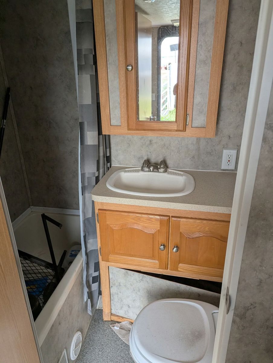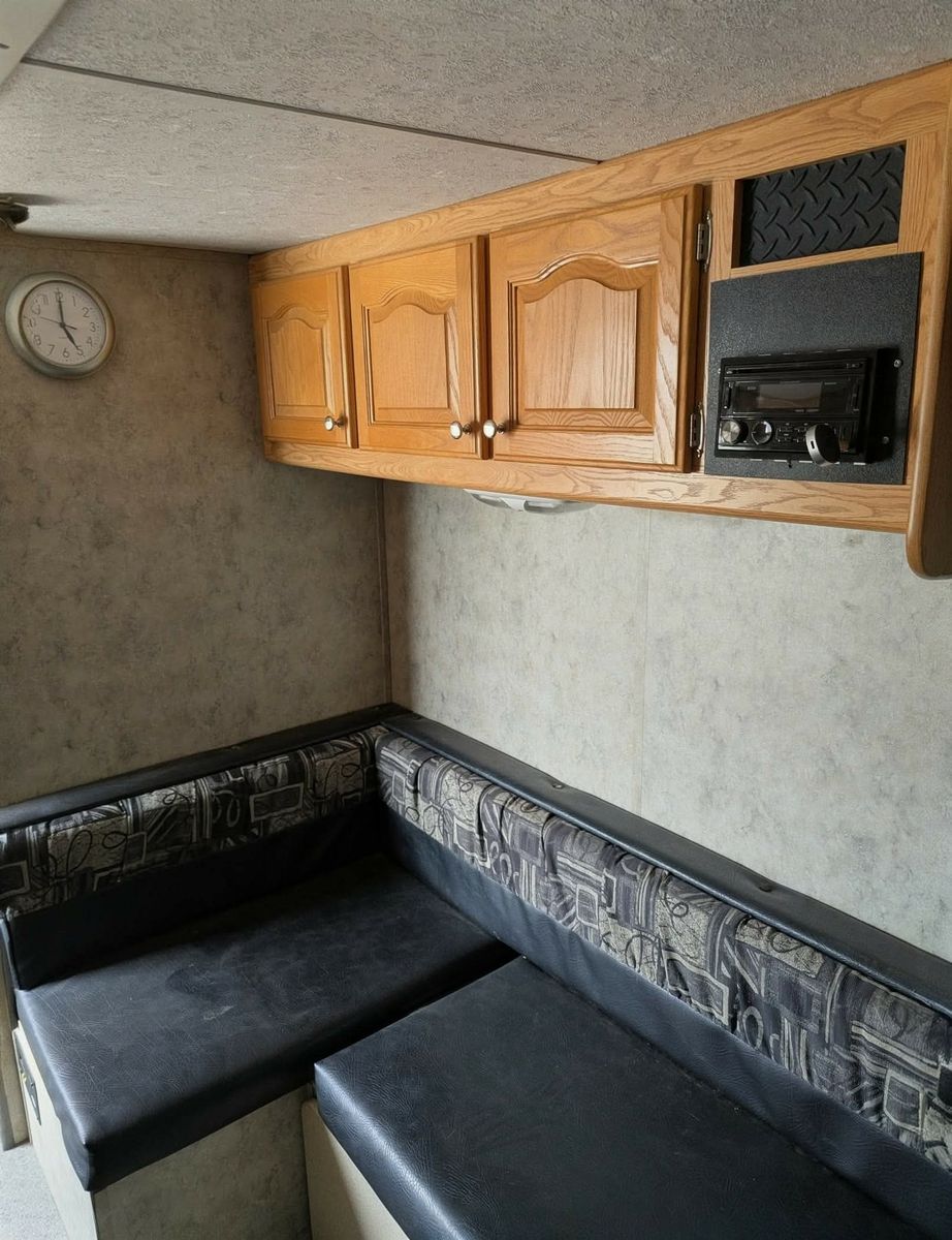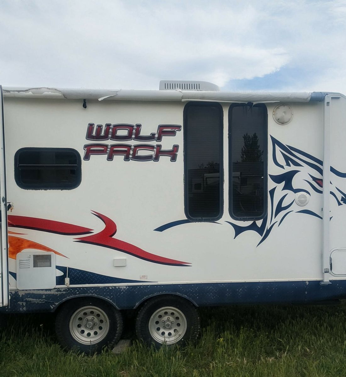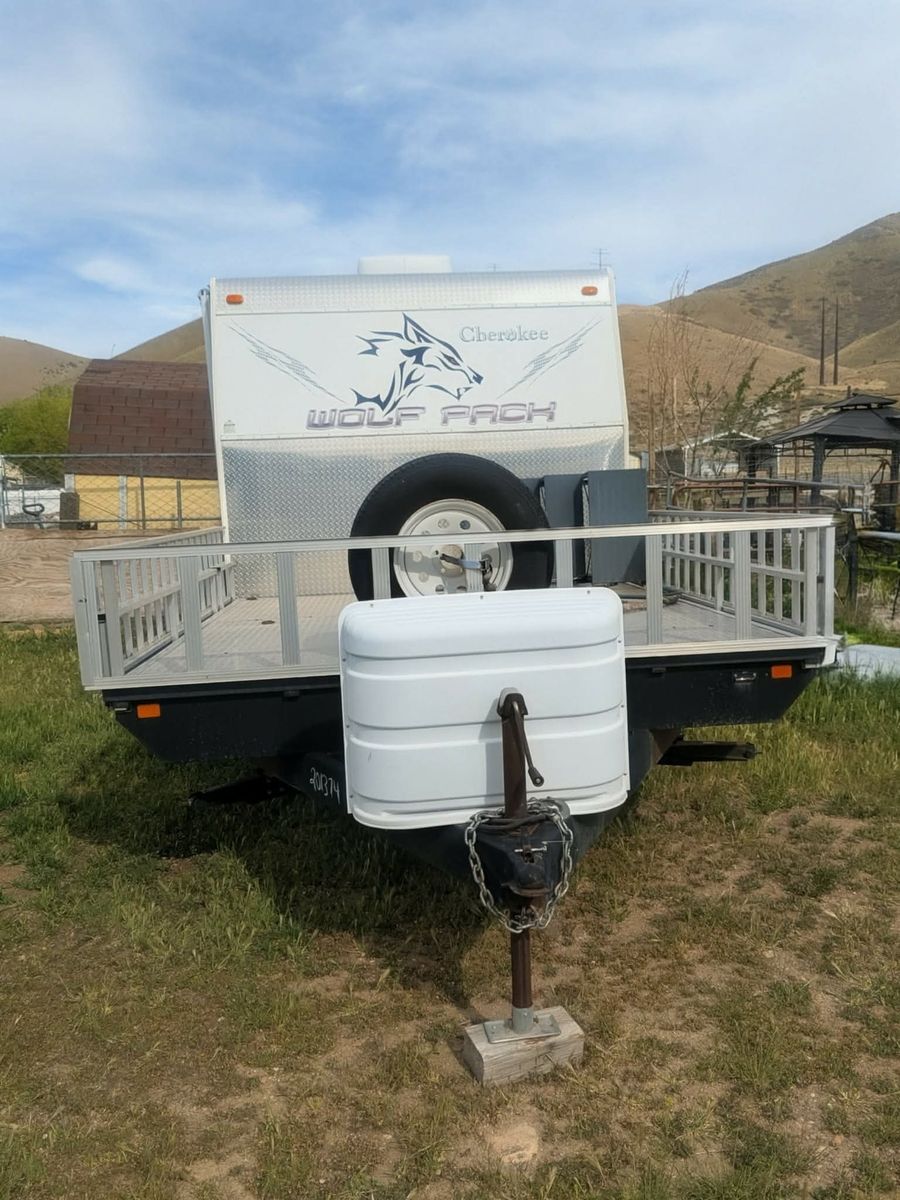 2009 Cherokee Wolf Pack with toy hauler, perfect for small families or a hunting trailer. Queen bed, under bed storage, small closets, removable table, L shaped couch, a kitchen and bathroom with shower. NEW batteries.