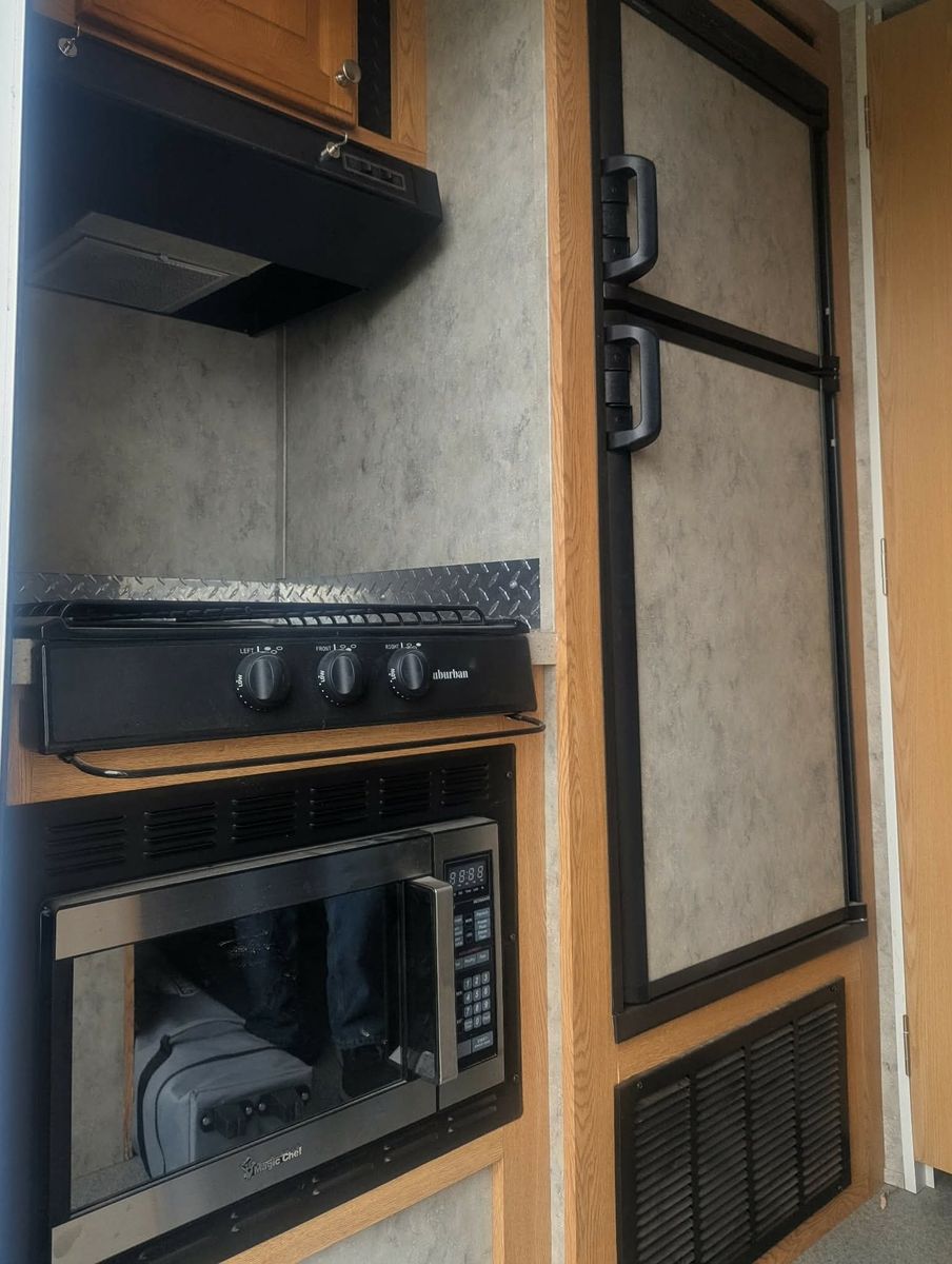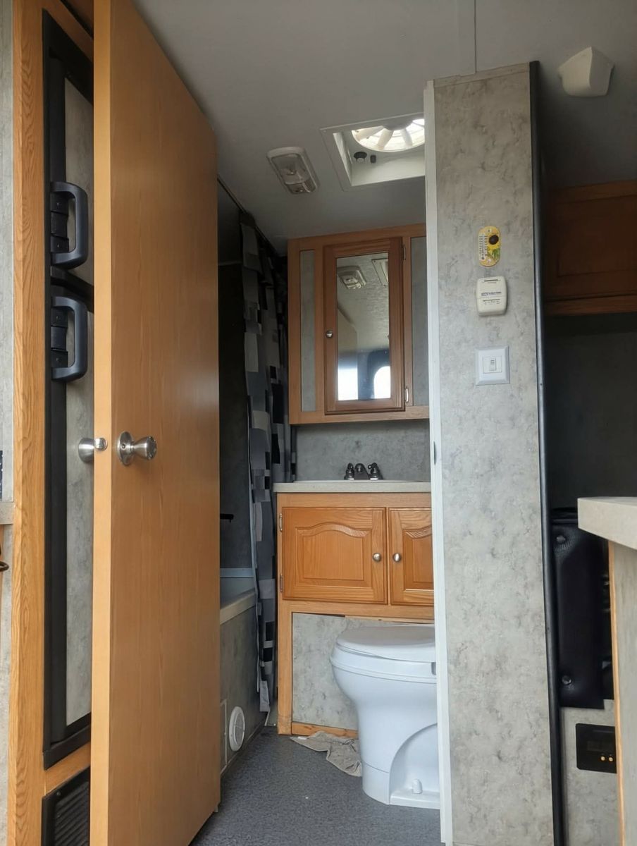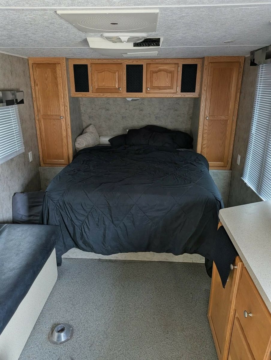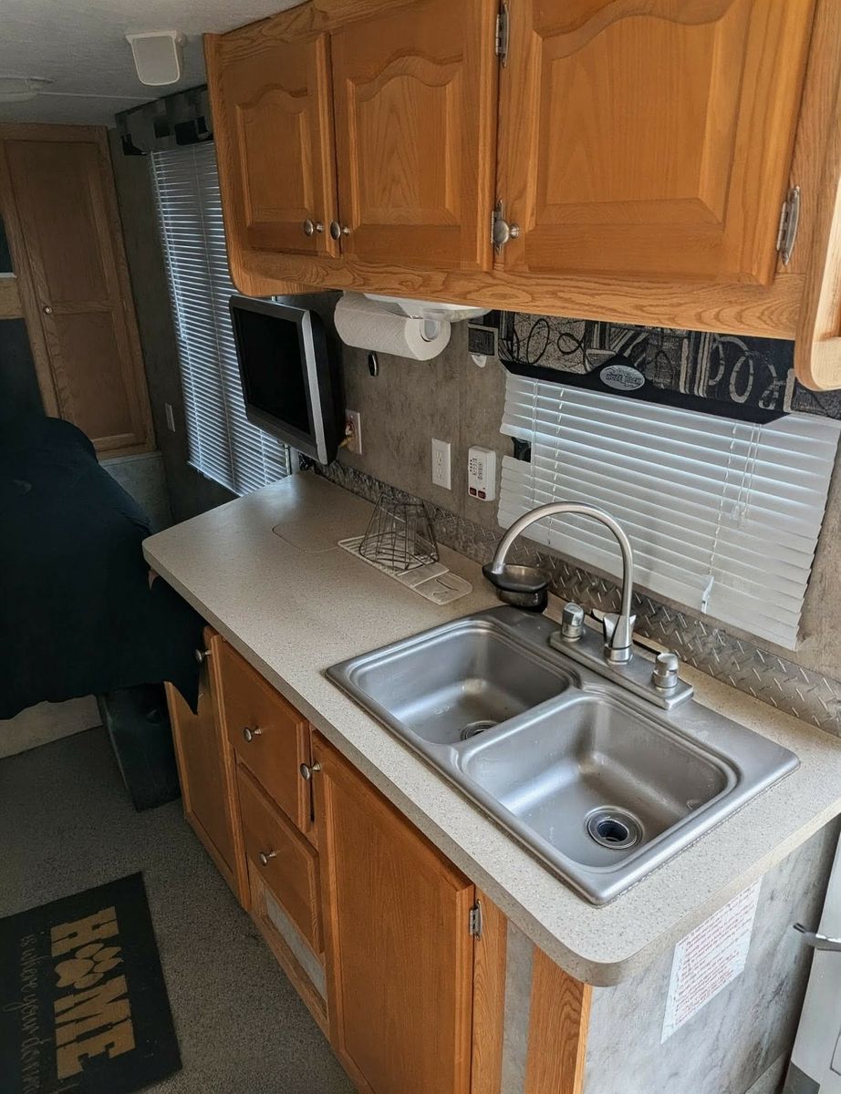2009 Cherokee Wolf Pack with toy hauler, perfect for small families or a hunting trailer. Queen bed, under bed storage, small closets, removable table, L shaped couch, a kitchen and bathroom with shower. NEW batteries.