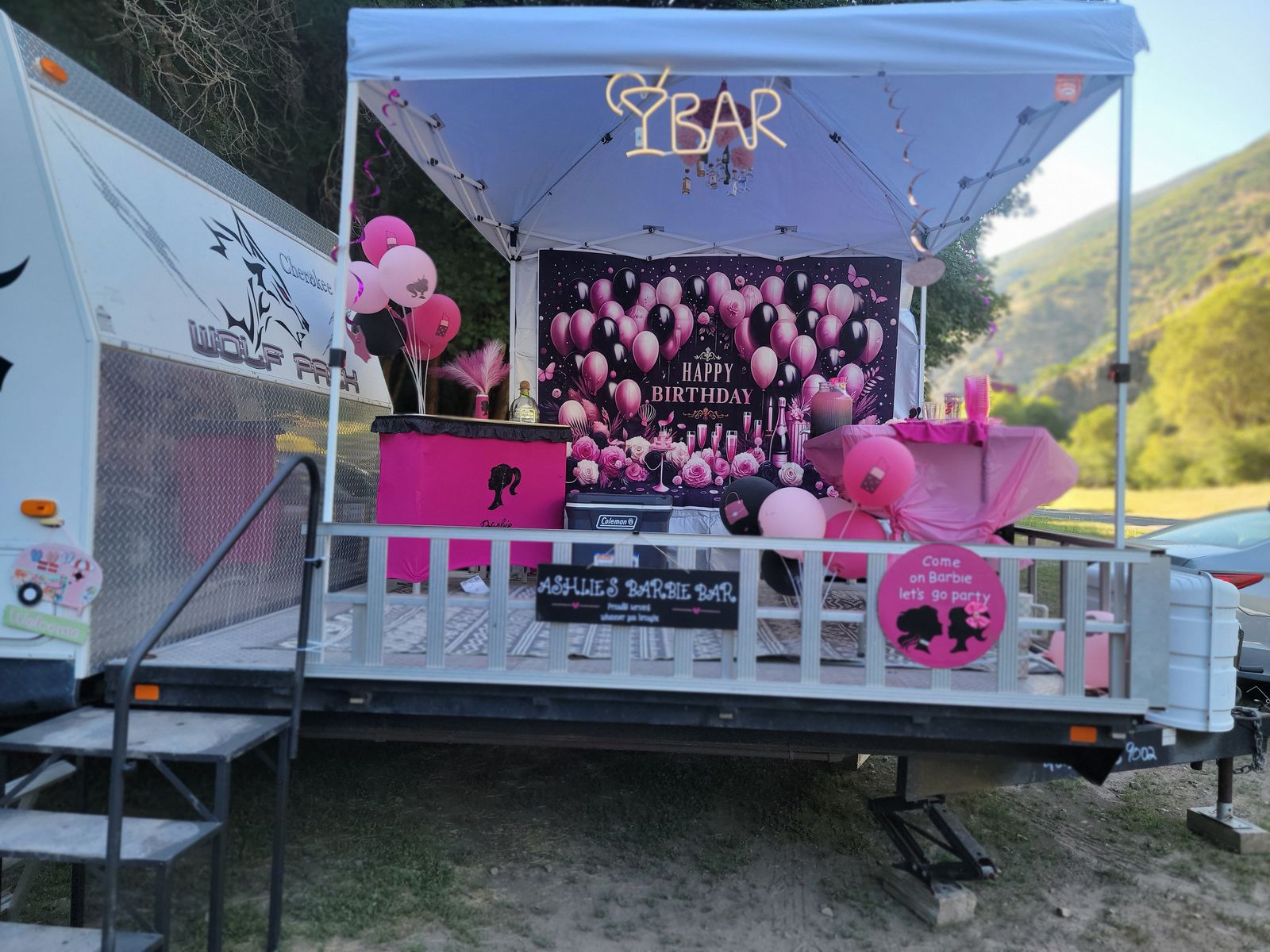 Stairs for toy hauler deck included. Deck is great for a party deck once toys are removed. See pics, we had an adult barbie party with the deck used as the "barbie bar"