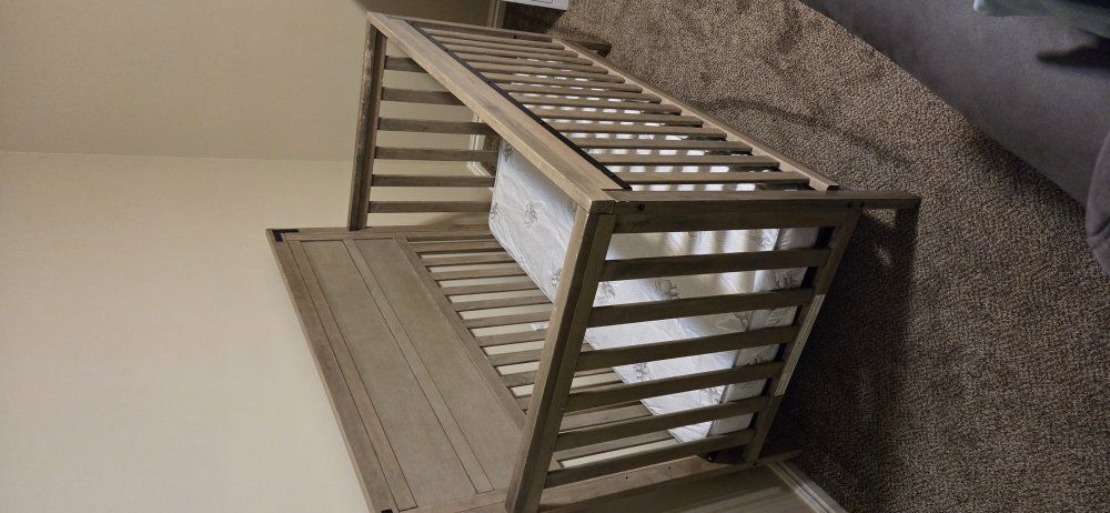 VenmoFisher Price baby crib. We got it used and then we were given a new crib. We have all the parts and nothing is broken. The mattress platform can be adjusted to be higher or lower. There are some signs of wear but nothing too bad.
