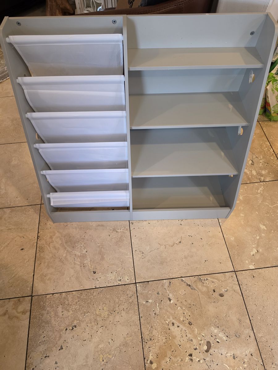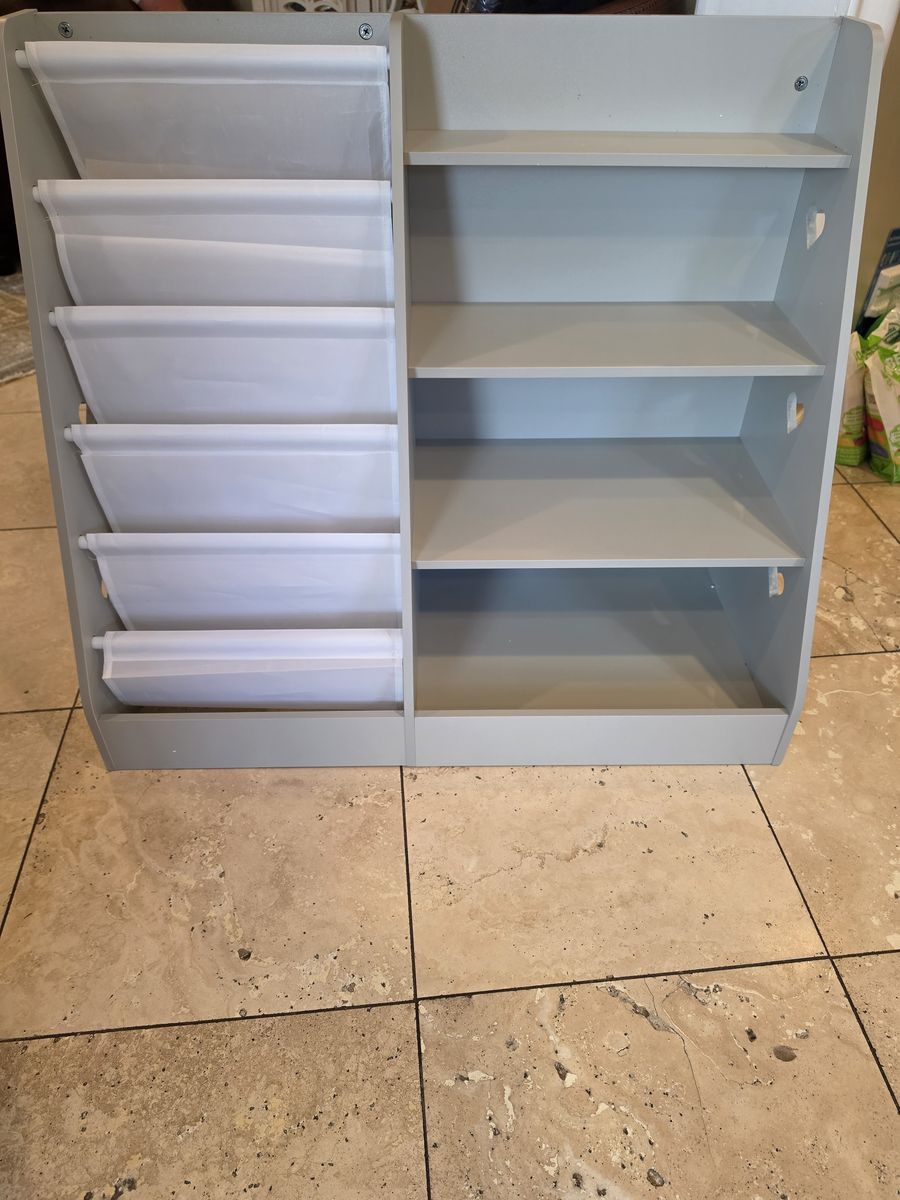 New Assembled LELELINKY Children's Bookshelf with 5 Book Displays and 4 Shelves, Large Grey.