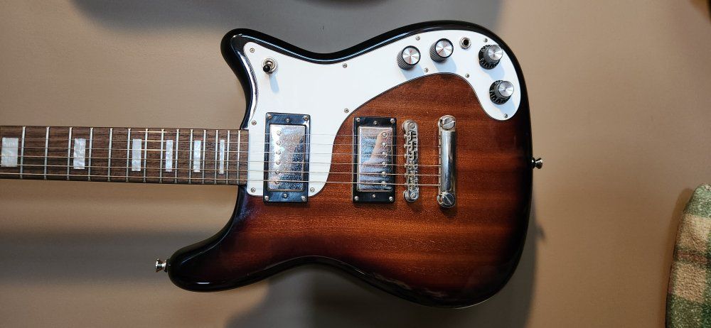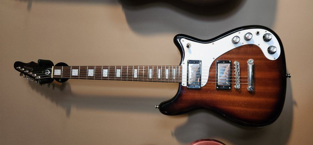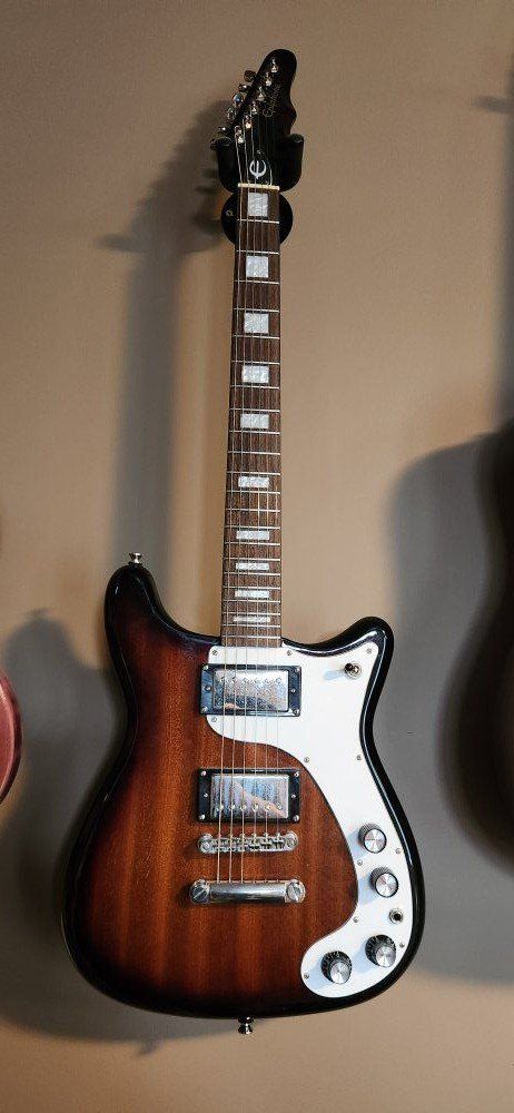 VenmoThis is an Epiphone Wilshire in tobacco sunburst. Sounds amazing and sustains like a Paul. Like new condition. Willing to trade for or towards a Les Paul or a SG. please text.