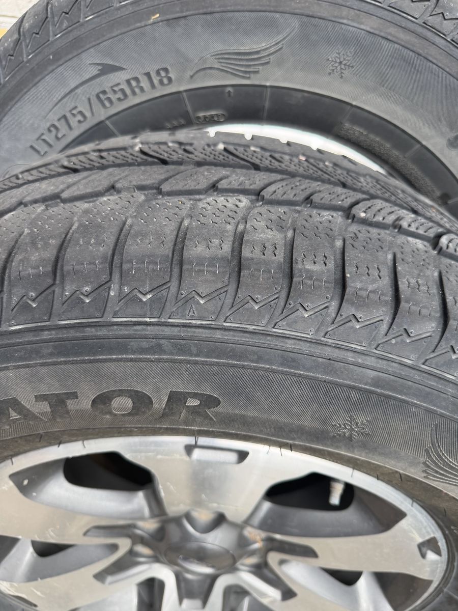 ApplePaySet of 4 Firestone Destination tires, size LT275/65R18, mounted on Ford OEM rims.