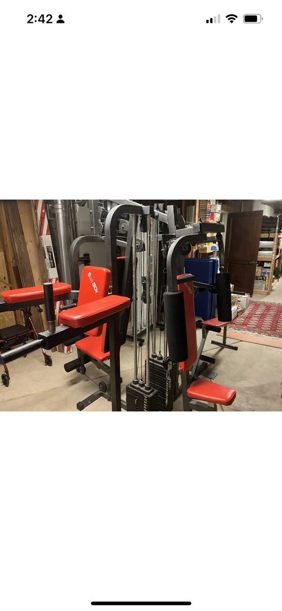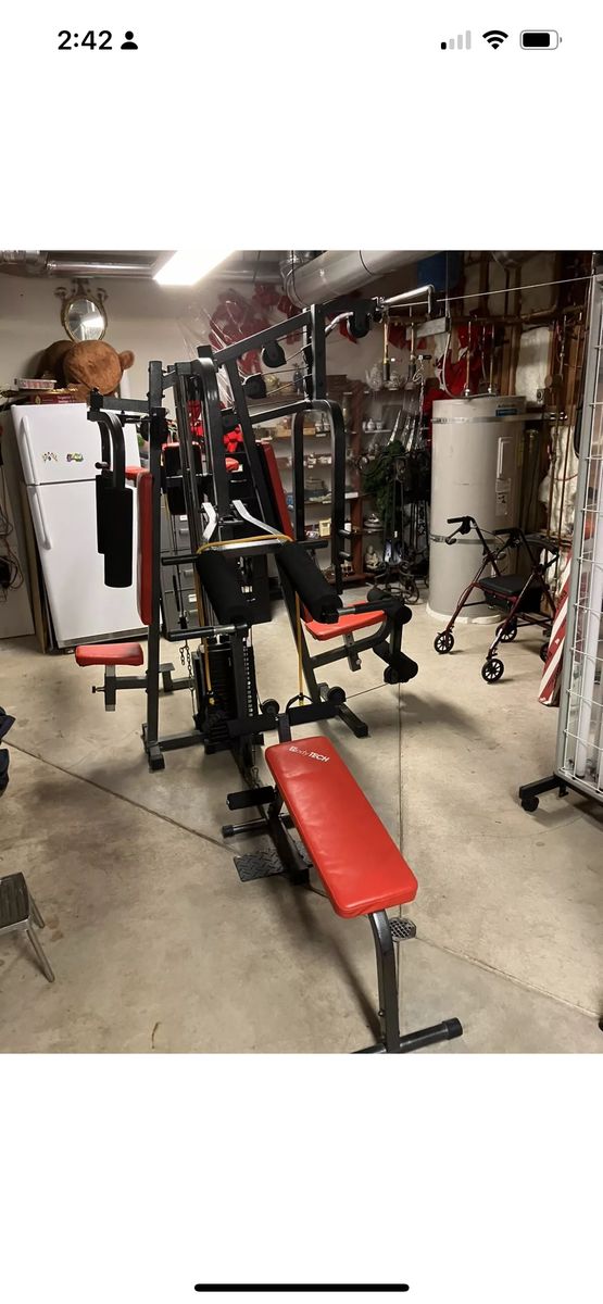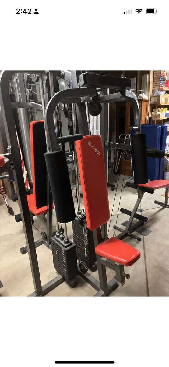 ApplePayHome gym by body tech. 15 exercises at four positions. Approximately 10.5' x 5.5' floor shadow. It is not completely disassembled, I left it in as large of pieces as possible for ease in reassembly. you'll need a full size truck to transport it.