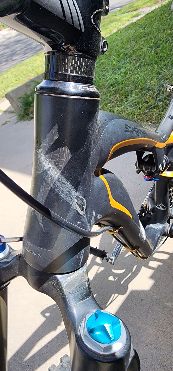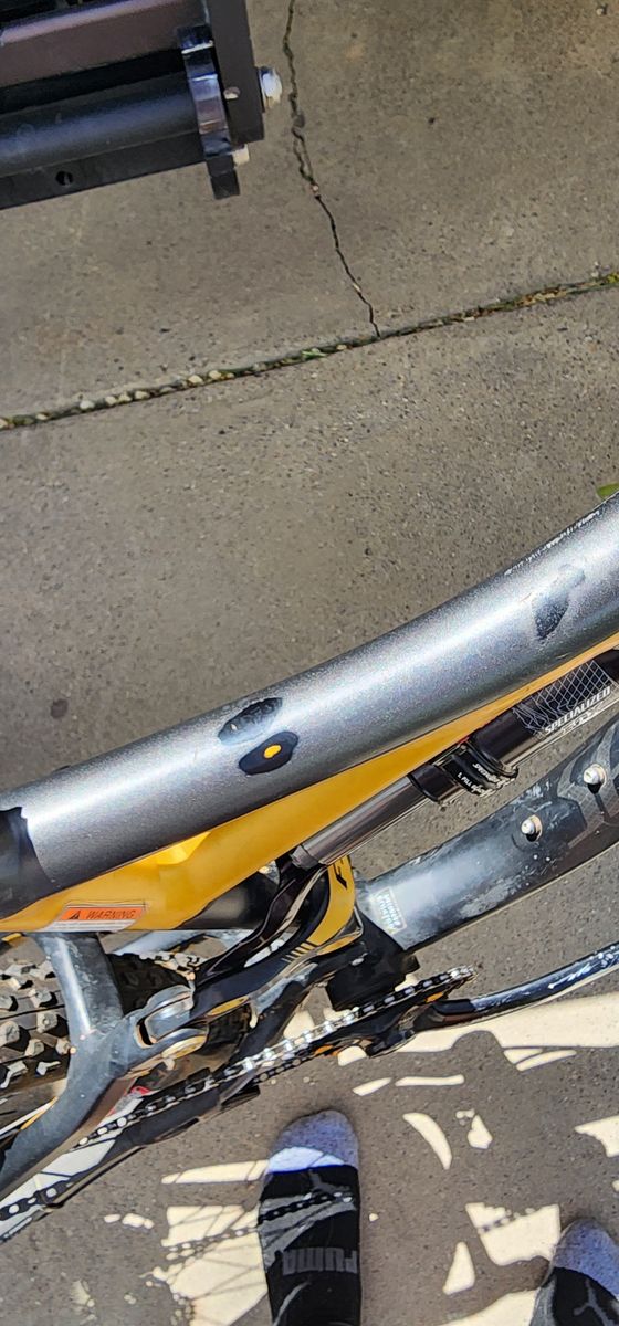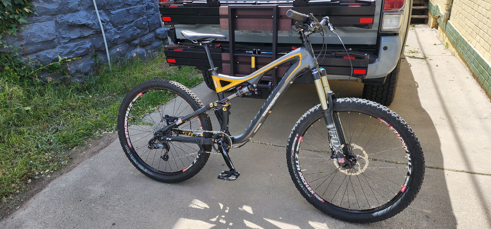 Has a couple of wear spots from my old bike rack pictured. Have had injuries so hasn't been ridden in 3 or 4 years. Tires look decent but prob need a reseal. I had replaced the back brake with shimano slx, the front brake prob needs to be replaced i think it has a broken piston. Shocks should prob need to be serviced but appear to have held up through the non-use.