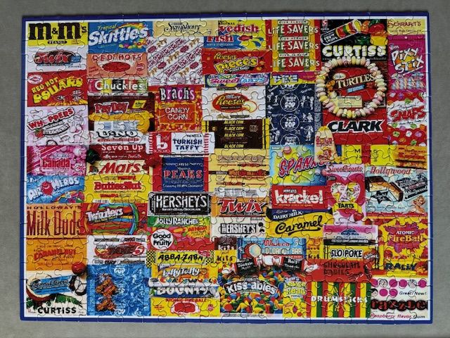 Venmo$8. 300 Piece Jigsaw Puzzle VINTAGE CANDY WRAPPERS by White Mountain. Easy Grip large pieces. Excellent condition. Completed puzzle measures approx. 18" x 24". Cash preferred. Pick up only in southwest Orem.