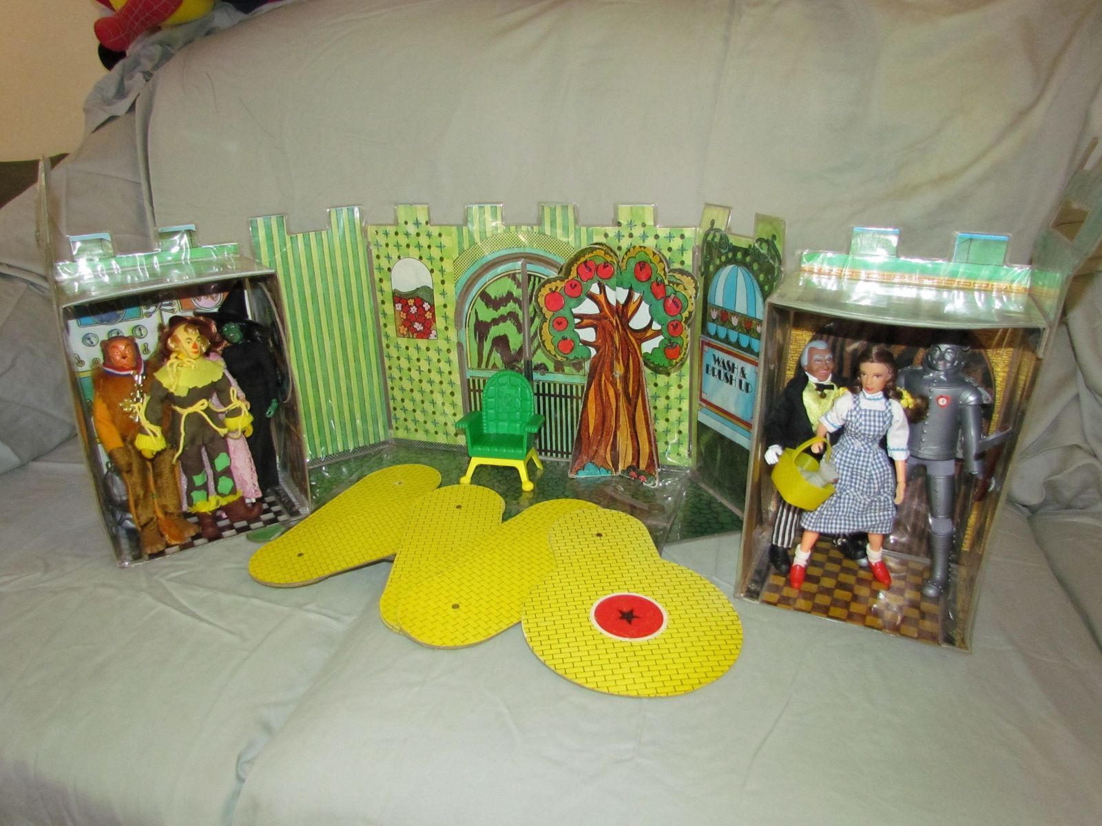 I've taken great care of them, and they remain in good condition. **However, there's some things to note. Glinda's arm has been reattached after an attempt of posing it (that shows just how tight their limbs are), the tree is missing part of its trunk (will still stand), the witch is missing a shoe, the handles have a slight bent, and the playset contains some light wear from age. **Please look closely at the photos provided before purchasing. Feel free to message me with any questions.
