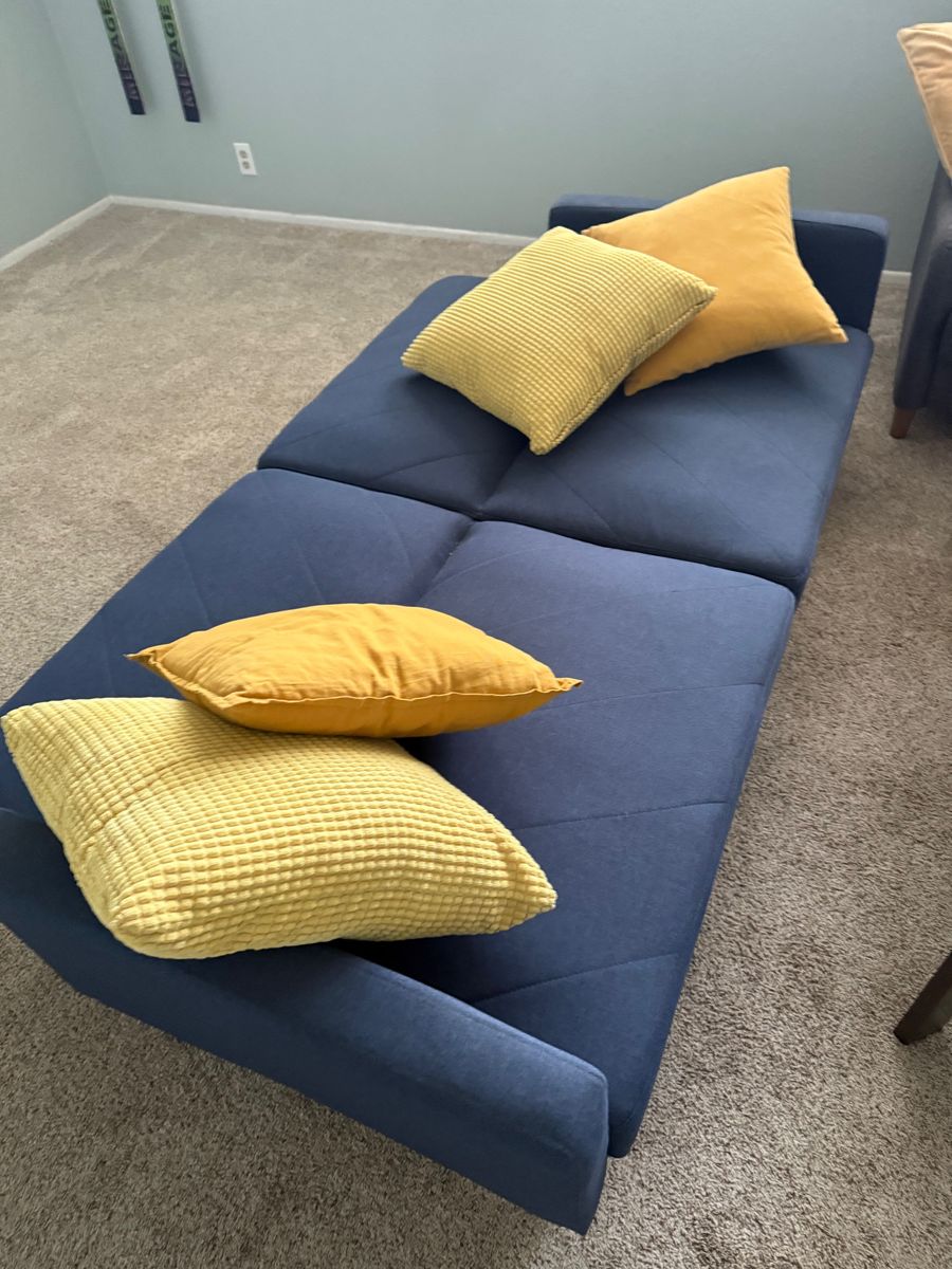 Zelleblue sofa, doubles as twin bed for guests