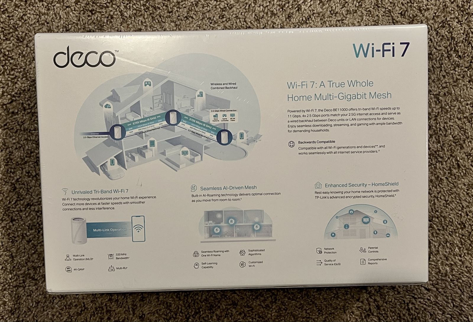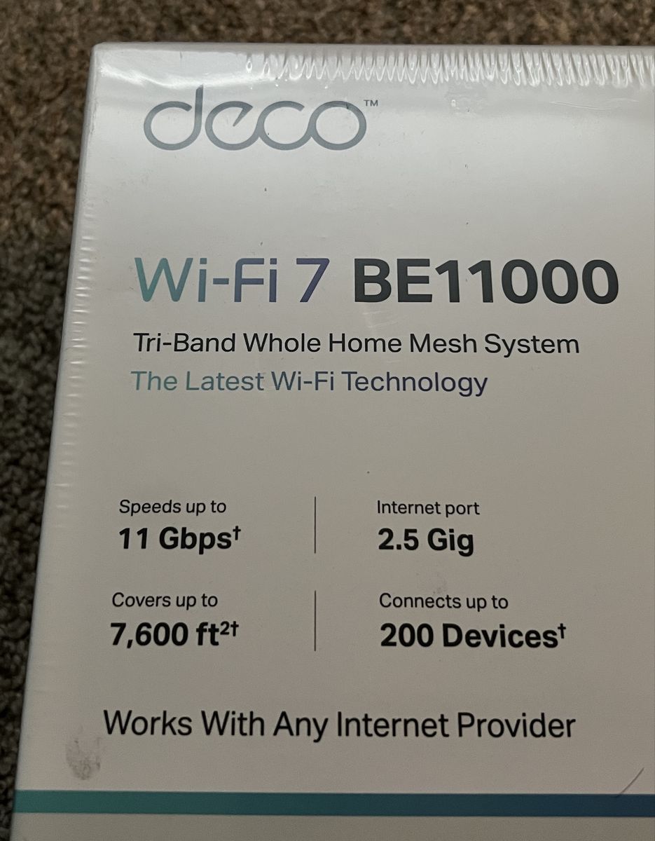 VenmoPack of 3 WiFi Tri-Band Mesh Router. New in sealed box. Model BE11000. Covers large homes up to 7,600 square feet.