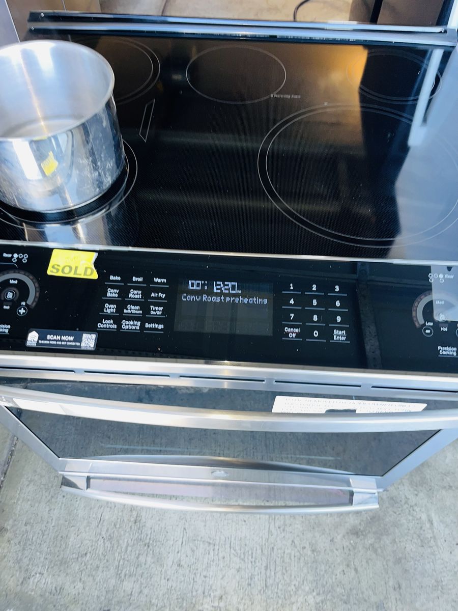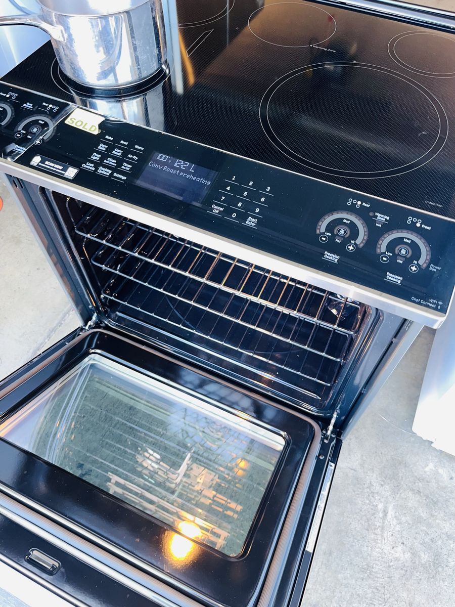 ApplePayIm selling MEW INDUCTION SLIDE RANGE GE STAINLESS STEEL 5 BURNERS CONVECTION OVEN, everything works and looks perfectly conditions, including 90 days warranty and delivery available, for more information please contact johnny,
