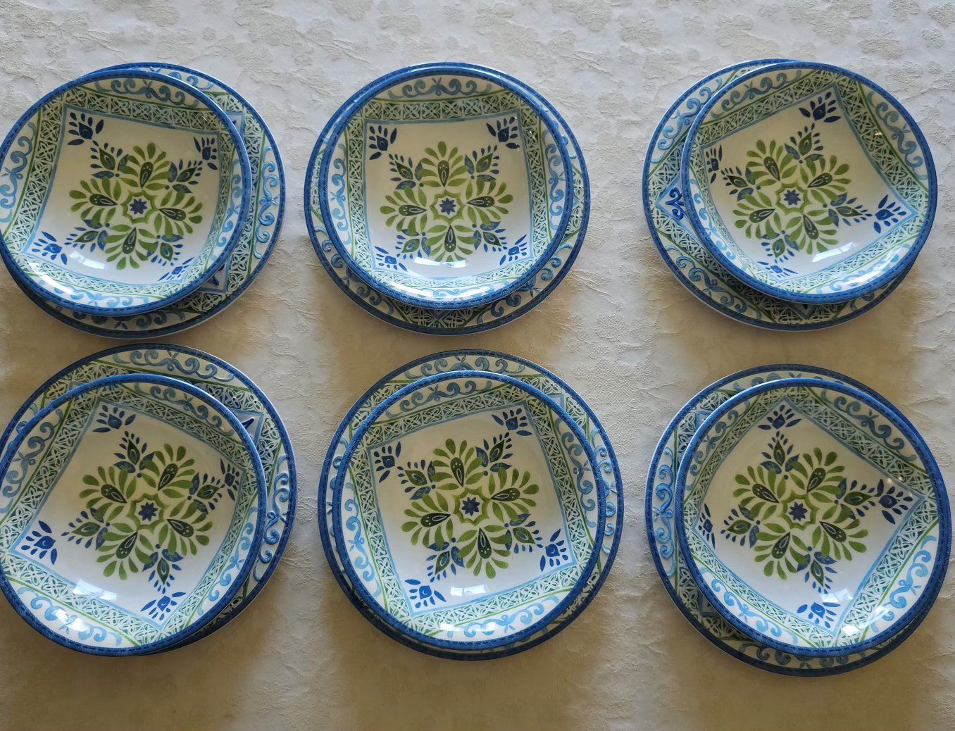 VenmoBeautiful Melamine Set of 6 Plates and 6Bowls. Cute for Indoor / Outdoor Use.